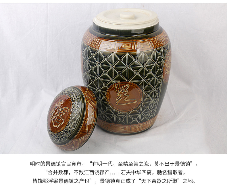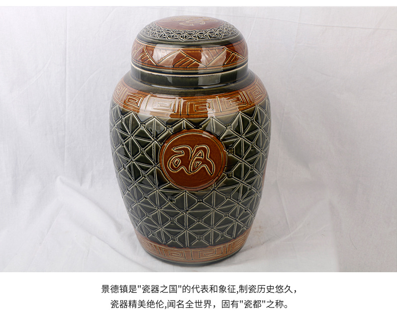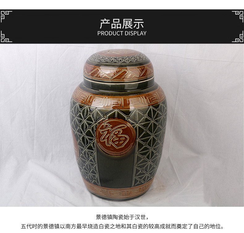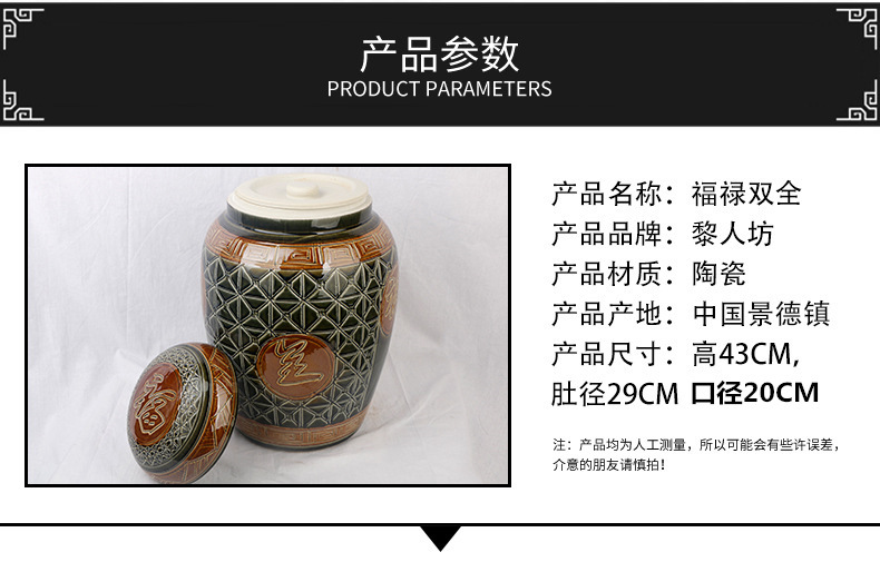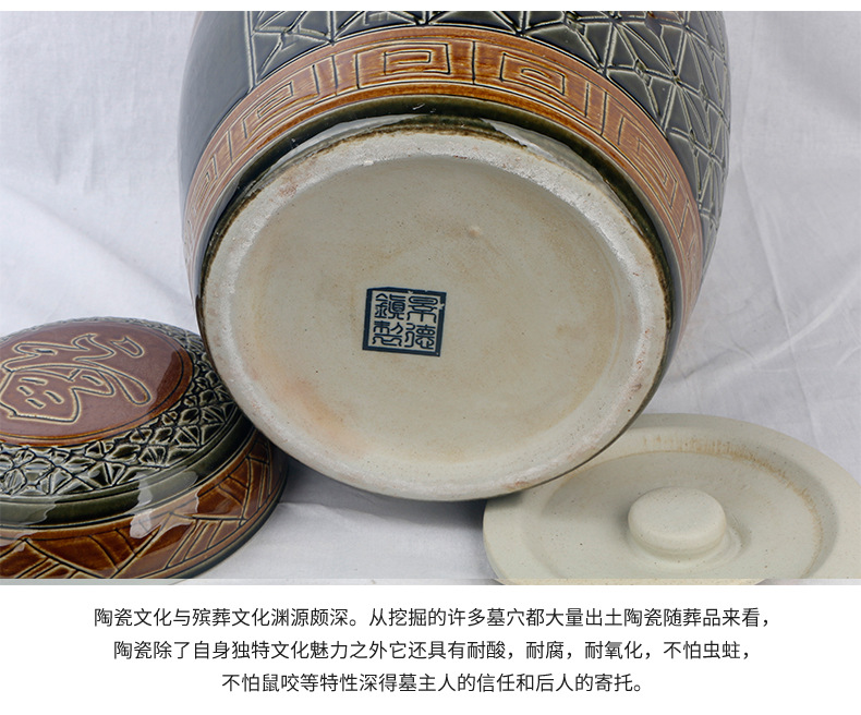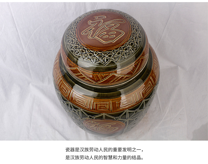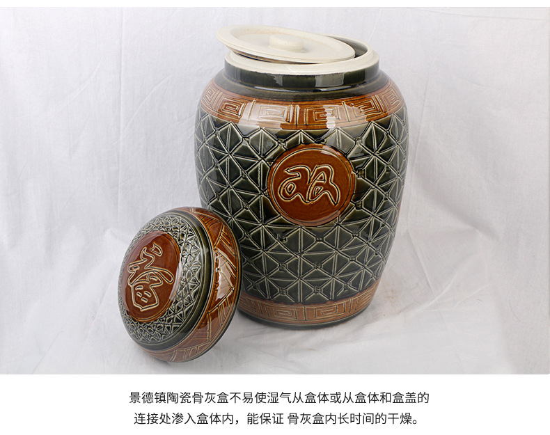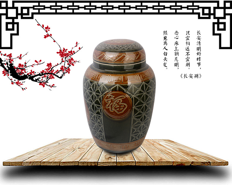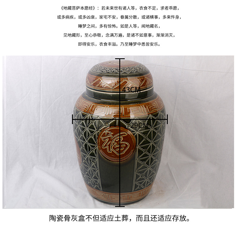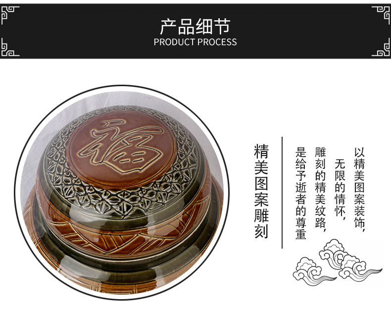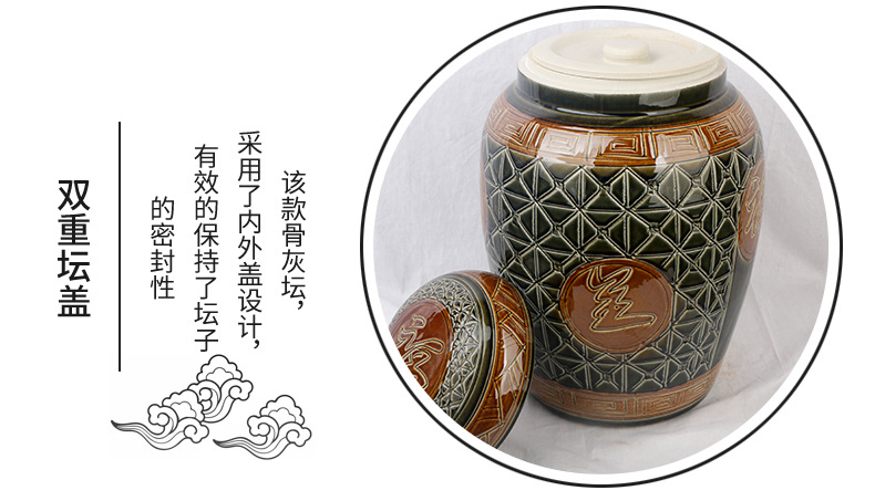 陶瓷骨灰坛双盖福禄双全大号雕刻罐形陶瓷骨灰罐