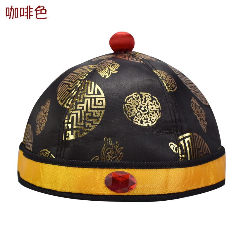 咖啡色 男女地主瓜皮帽子唐装寿帽殡葬用品寿衣全套配件