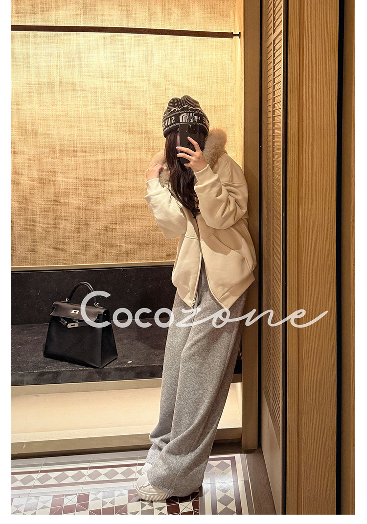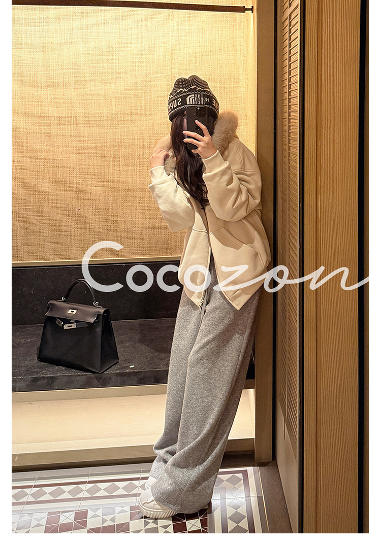 COCO ZONE 刘 一一 “珊瑚绒校服裤”侧边条纹柔软休闲裤 CD2A2908
