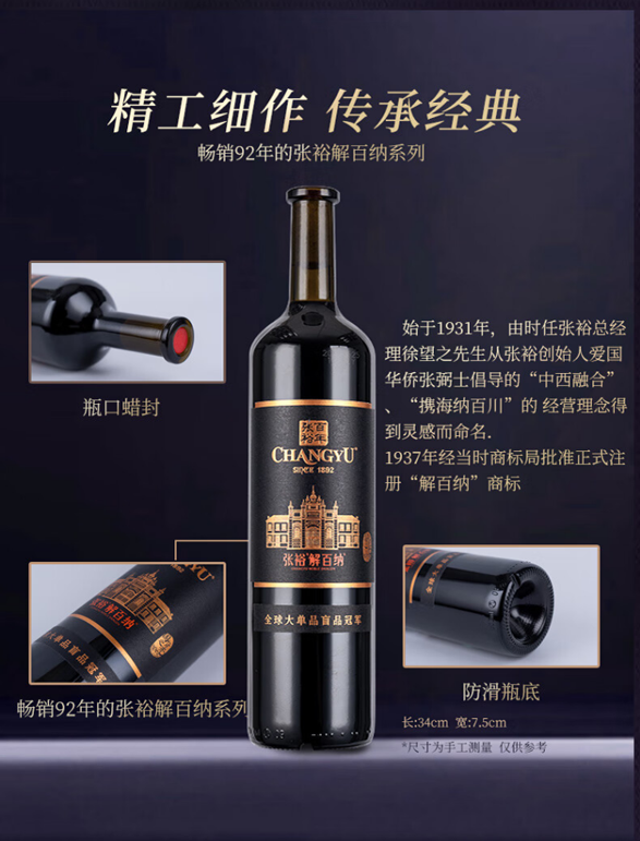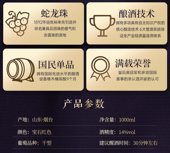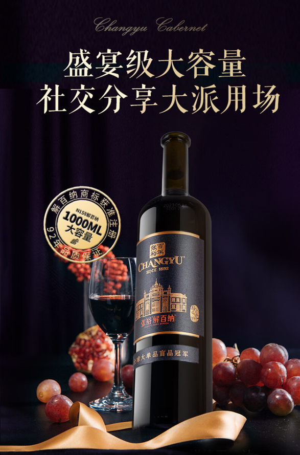 张裕畅销解百纳1000ml*4 大单品盲品赛冠军