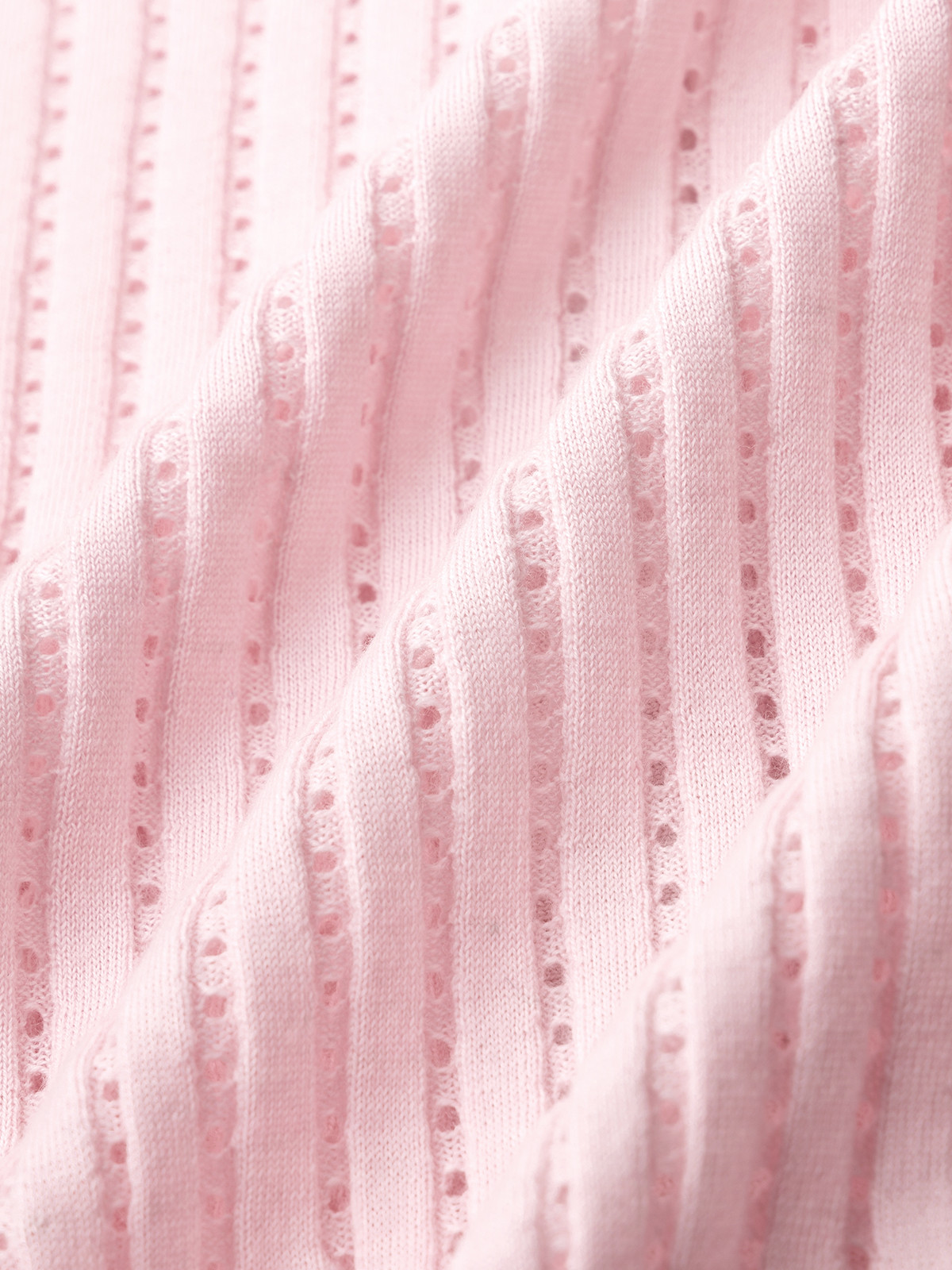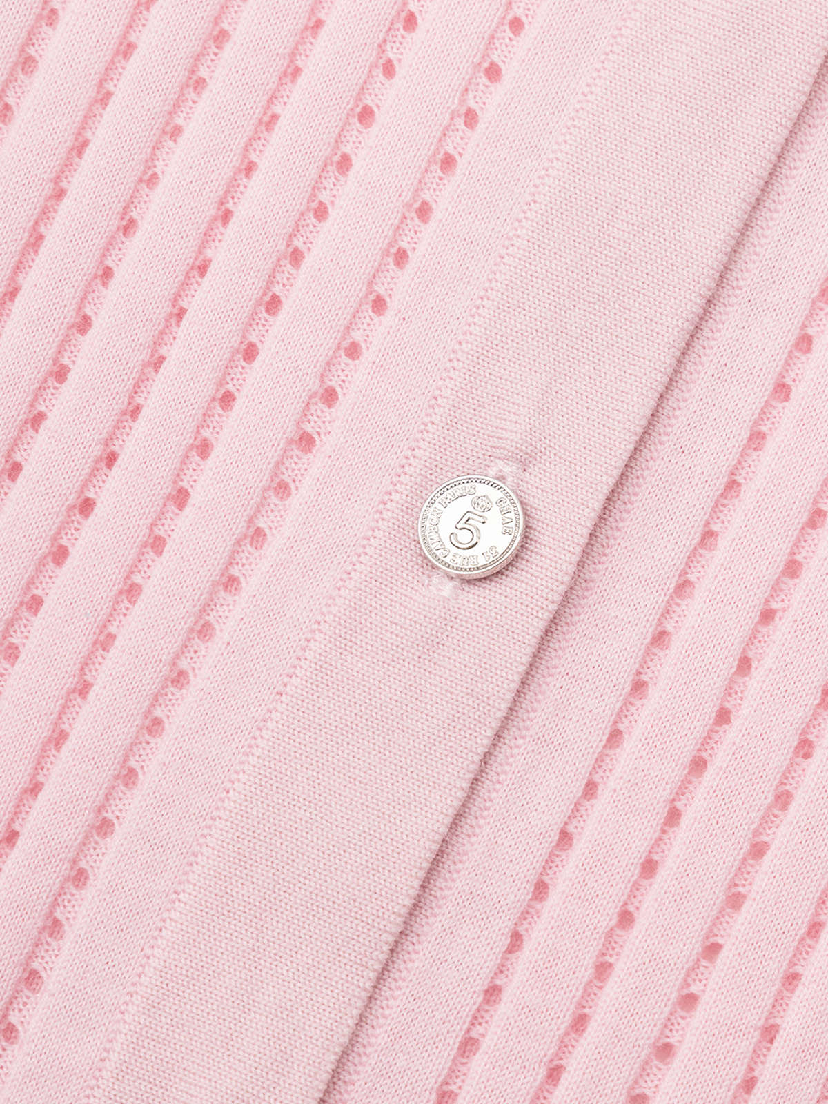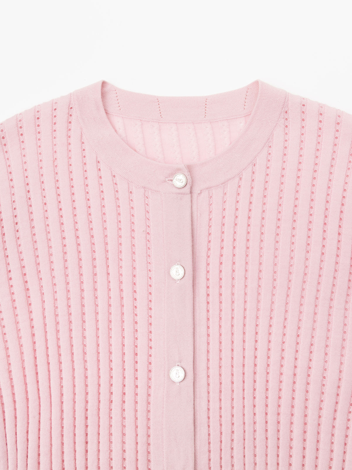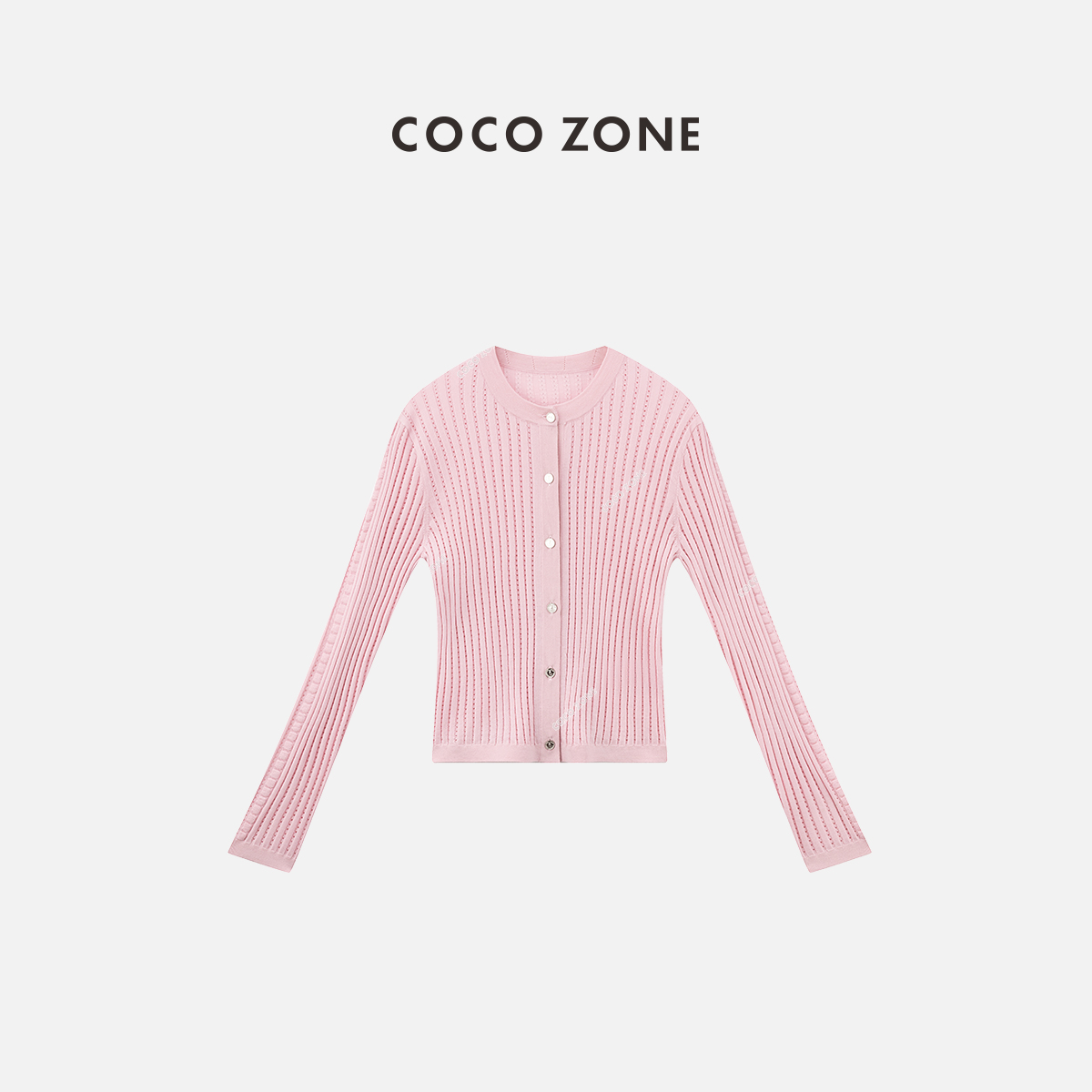COCO ZONE100羊毛“粉芭比”简约圆领镂空针织开衫休闲单排扣上衣CC1B0693