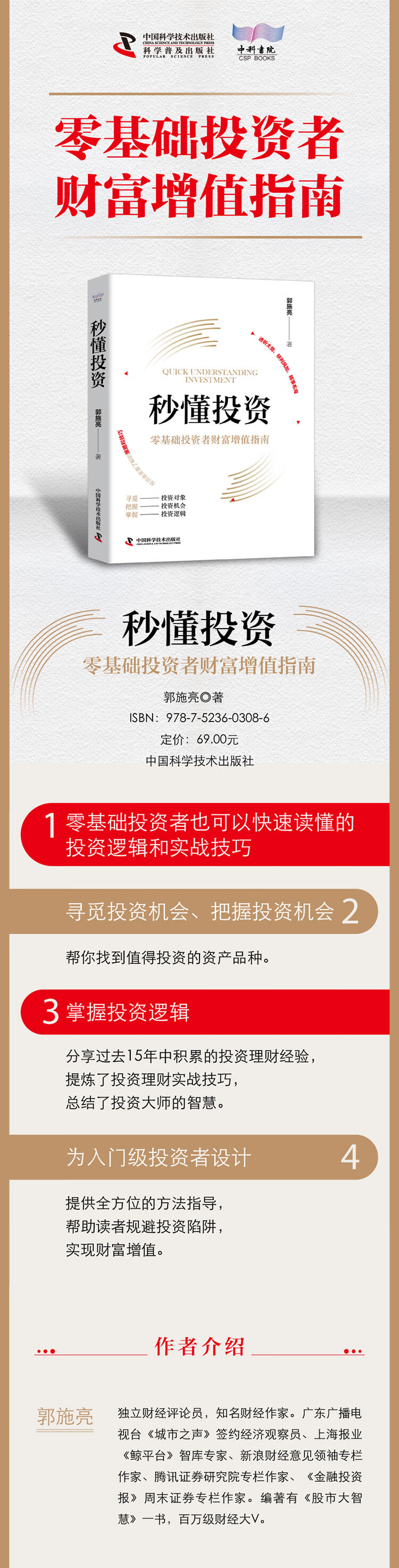 本书分别从寻觅投资机会、把握投资机会,以及掌握投资逻辑三个方面展开,帮读者找到了值得投资的资产品种。作者还将自己在过去15年中积累的投资经验做了详细的分享,提炼了实战技巧,总结了投资大师的智慧。本书旨在为入门级投资者提供全方位的方法指导,帮助读者规避投资陷阱,提高风控能力,实现财富增值。