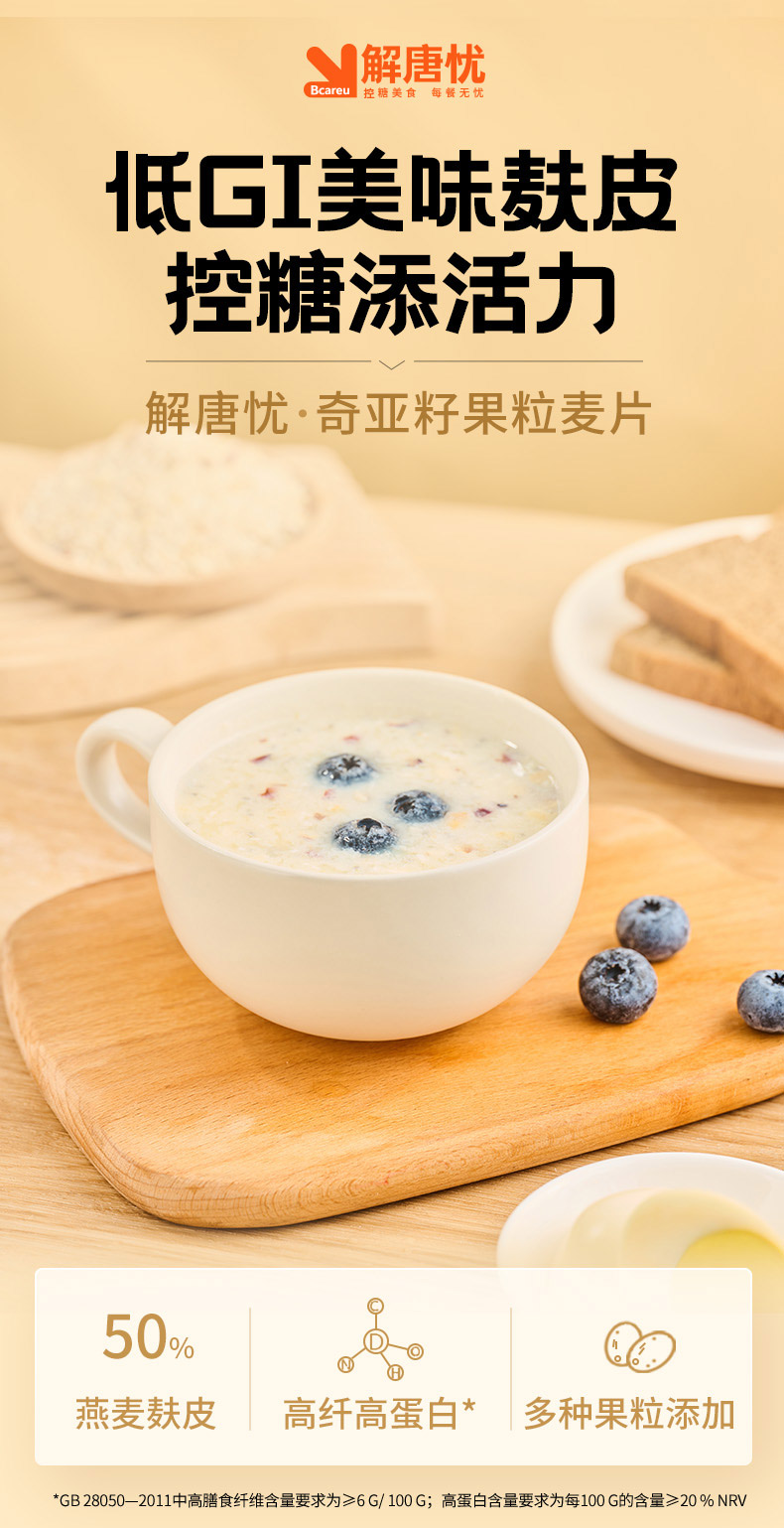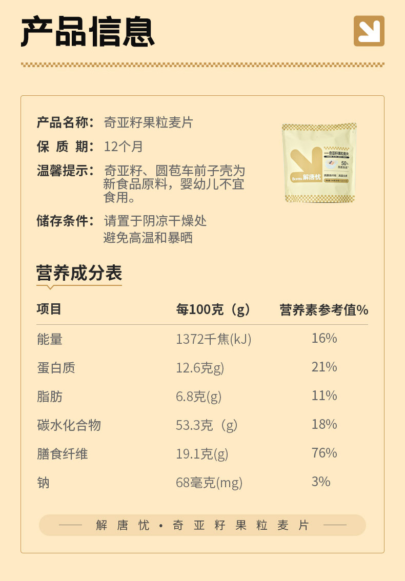 解唐忧 奇亚籽果粒麦片 50%燕麦麸皮 30g*12袋