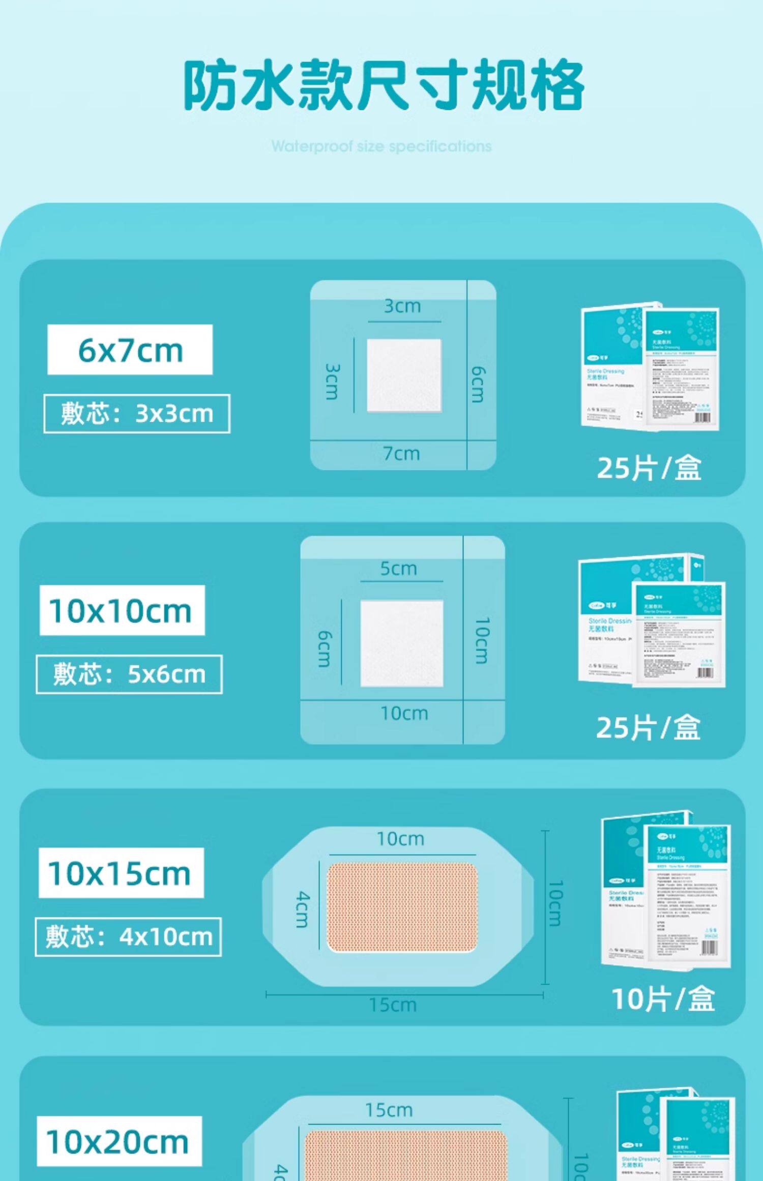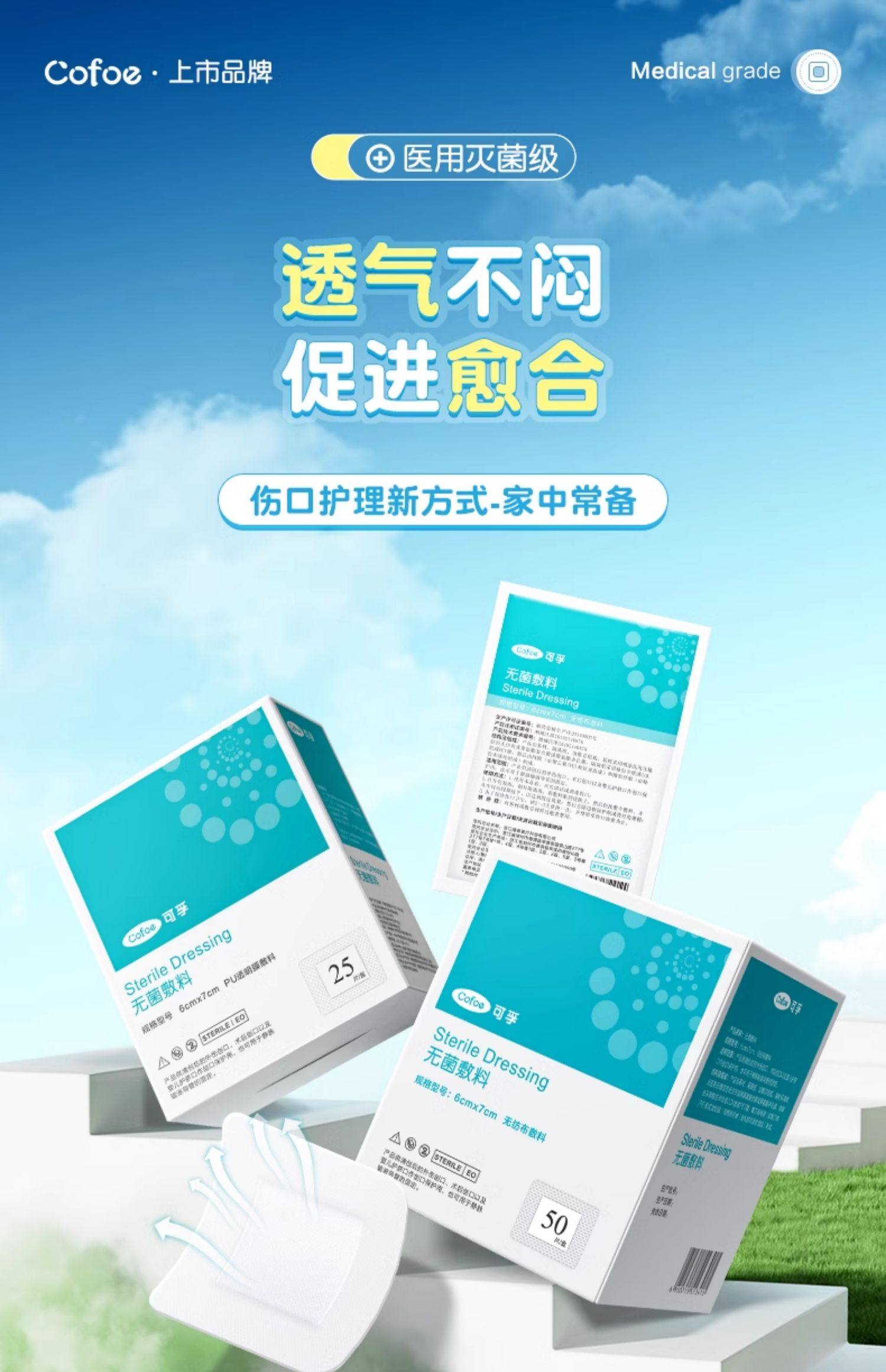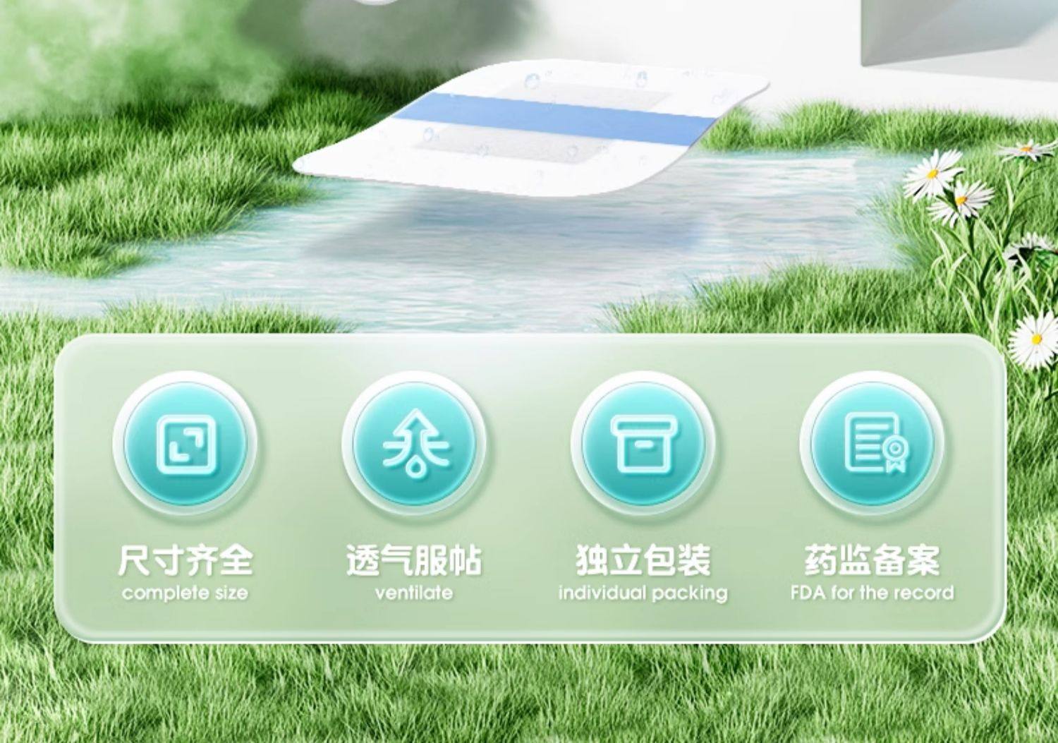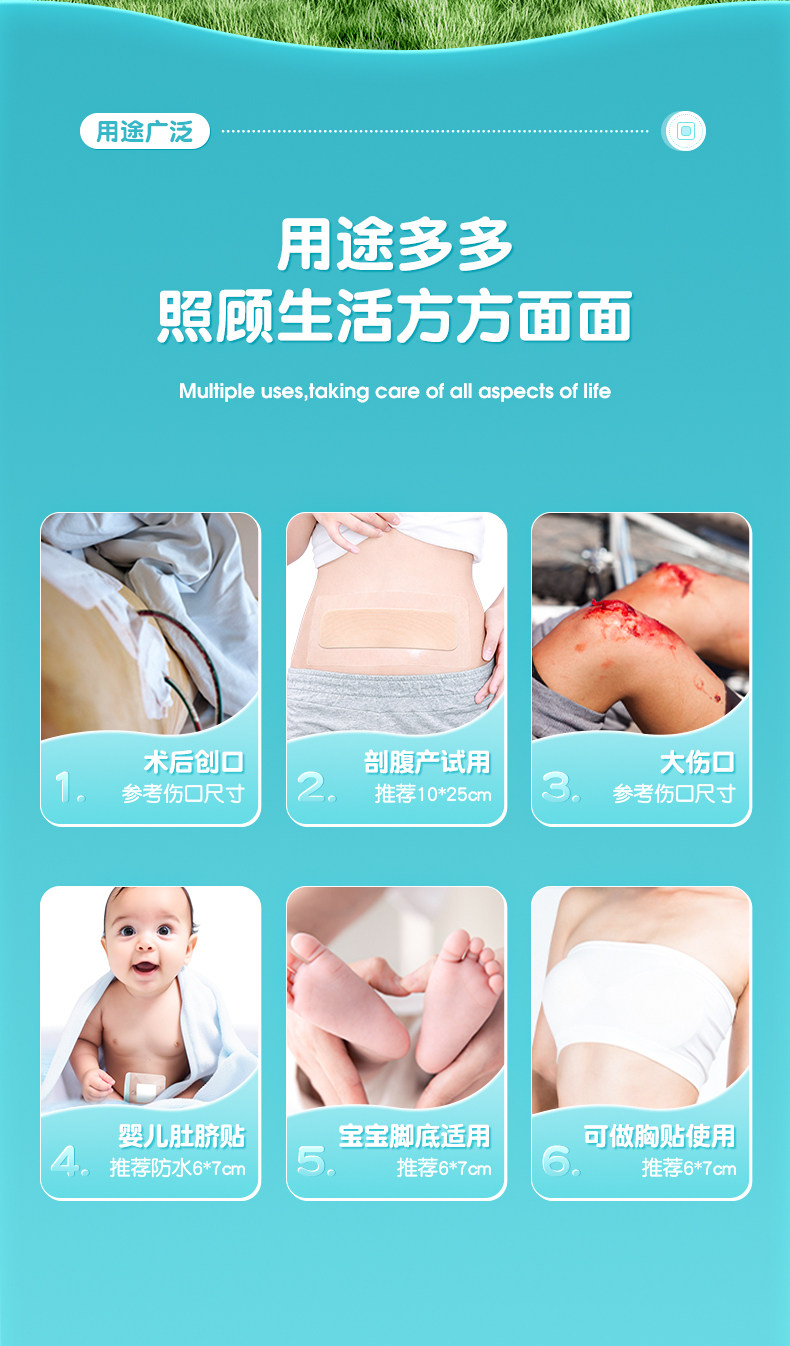 可孚医用无菌贴敷防水敷料伤口愈合大号创口贴胸贴一次性自粘敷贴