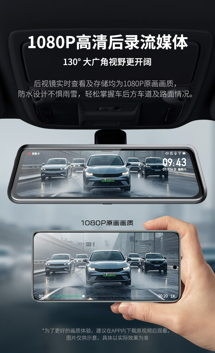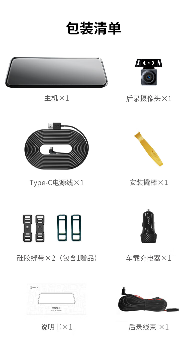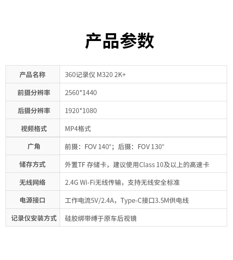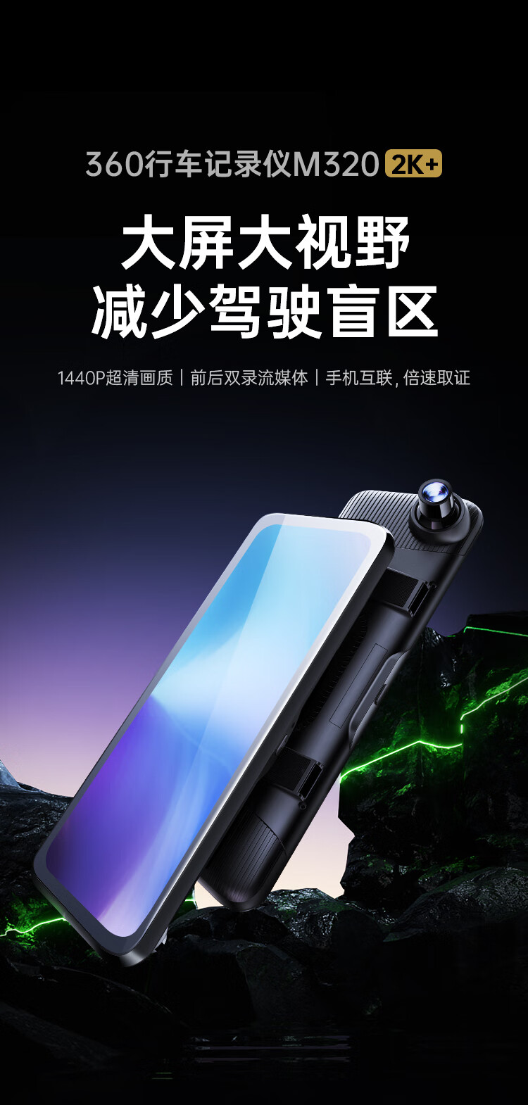 360汽车行车记录仪M320 2K+高清夜视 前后双录车载流媒体后视镜