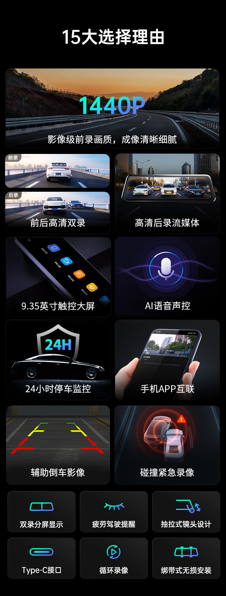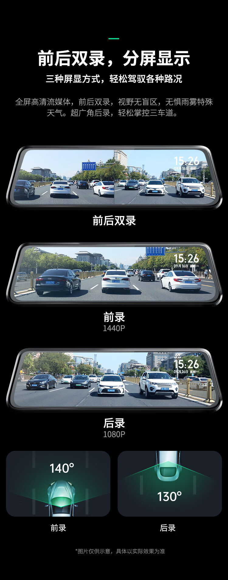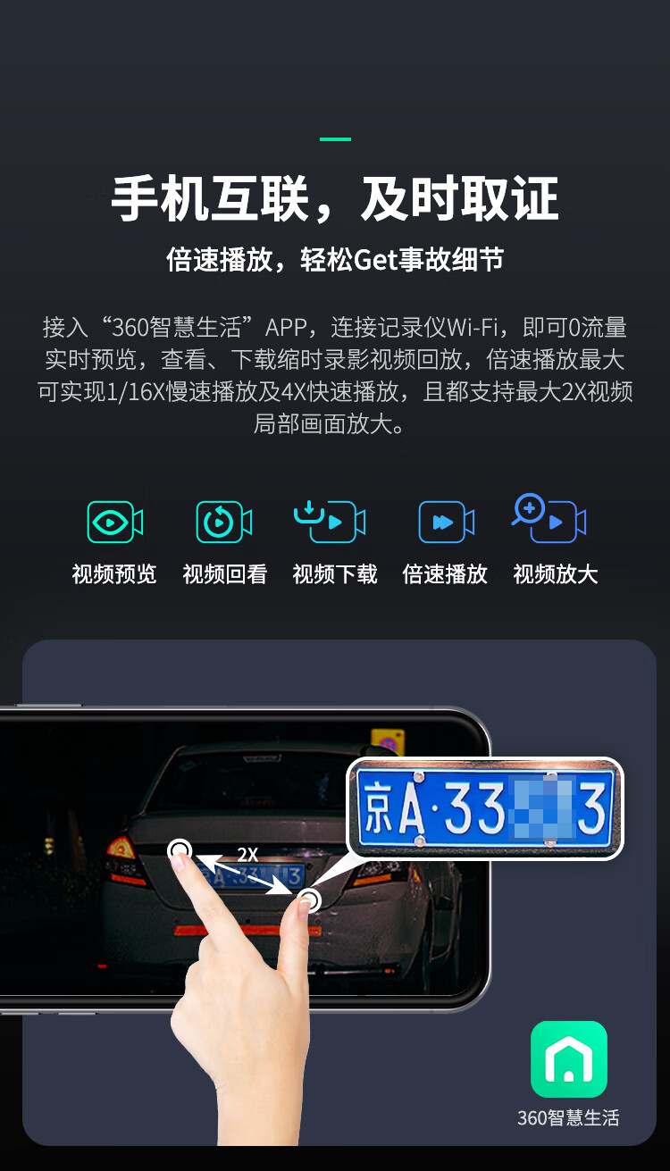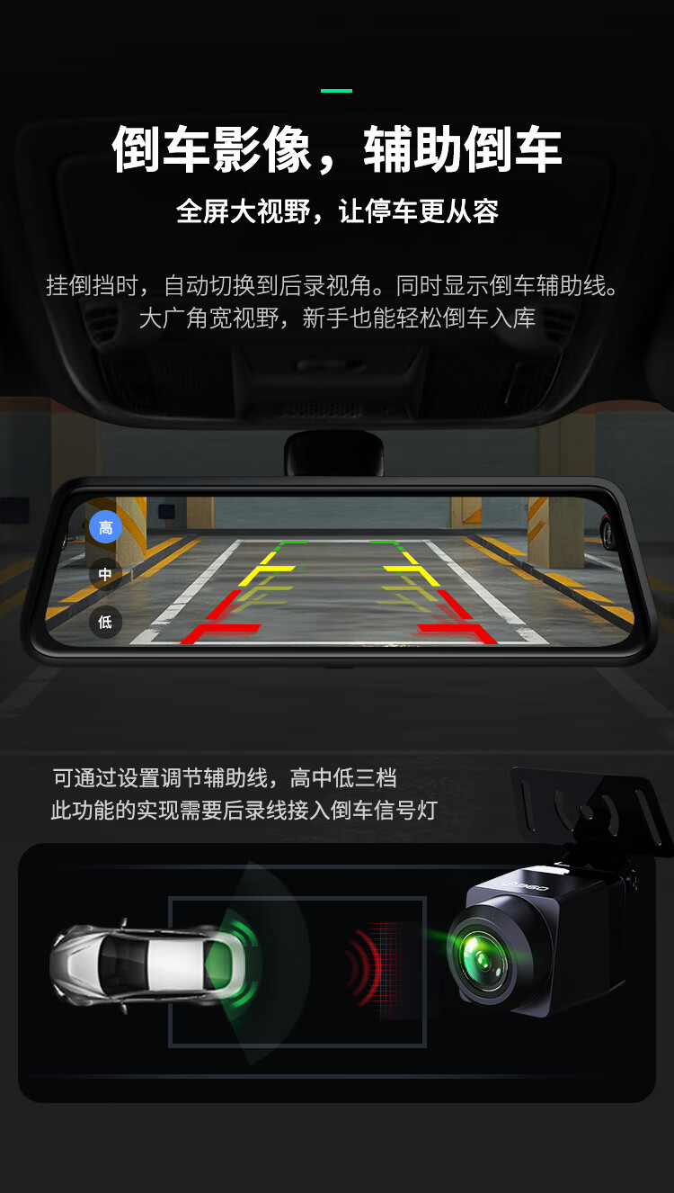 360汽车行车记录仪M320 2K+高清夜视 前后双录车载流媒体后视镜