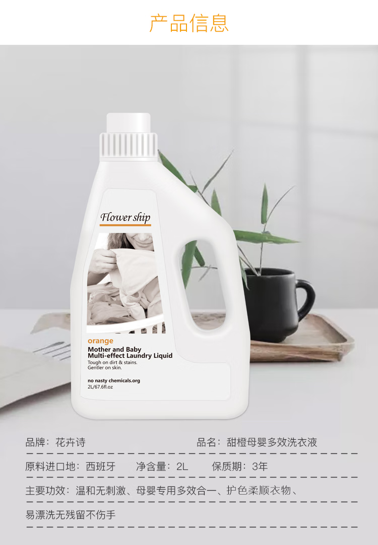 花卉诗甜橙母婴多效洗衣液2L