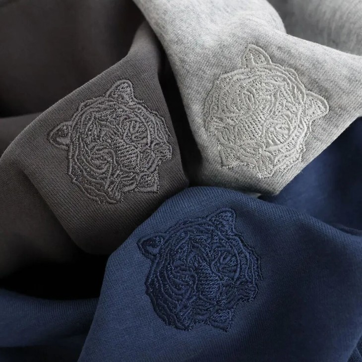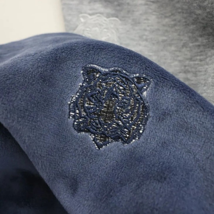 与简单的胶印不同,刺绣工艺使虎头图案具有强烈的立体感、肌理感和高级感。