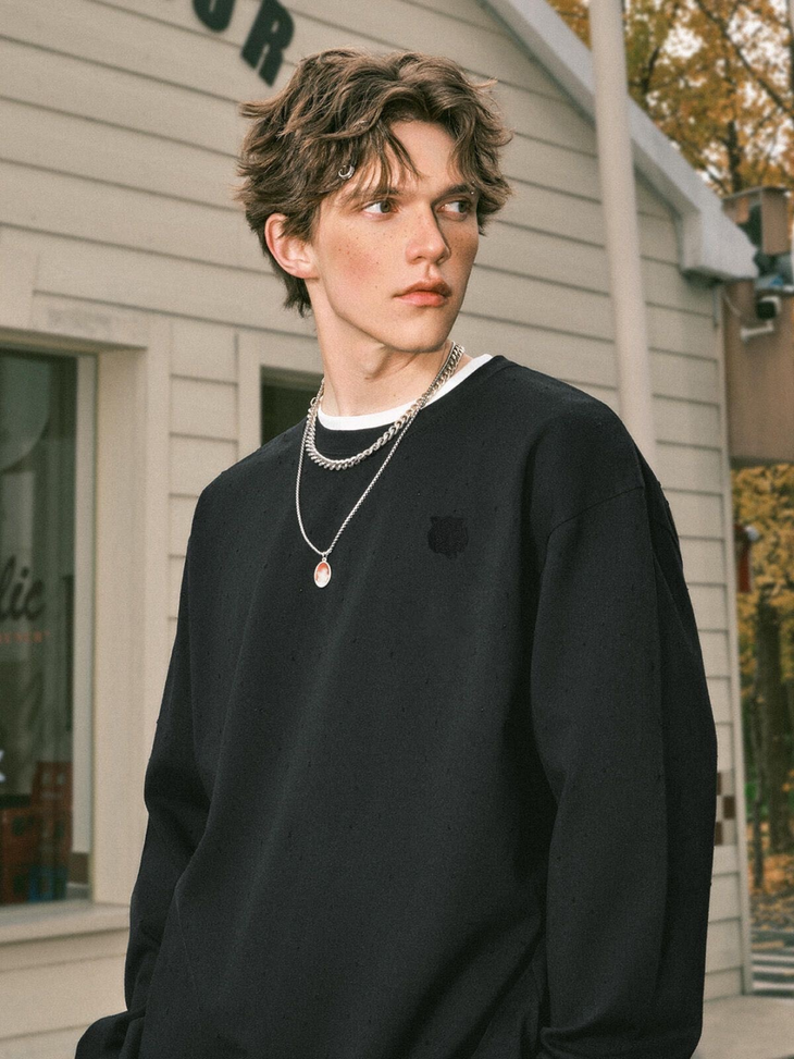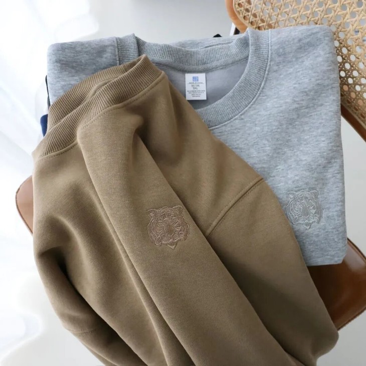 【2件减10元】伊泺杉虎头刺绣加绒圆领卫衣 |「虎头刺绣」,拿捏时髦慵懒感,男女同款,尺码一样【4-8天发货】