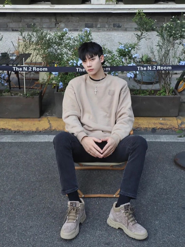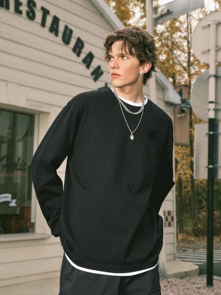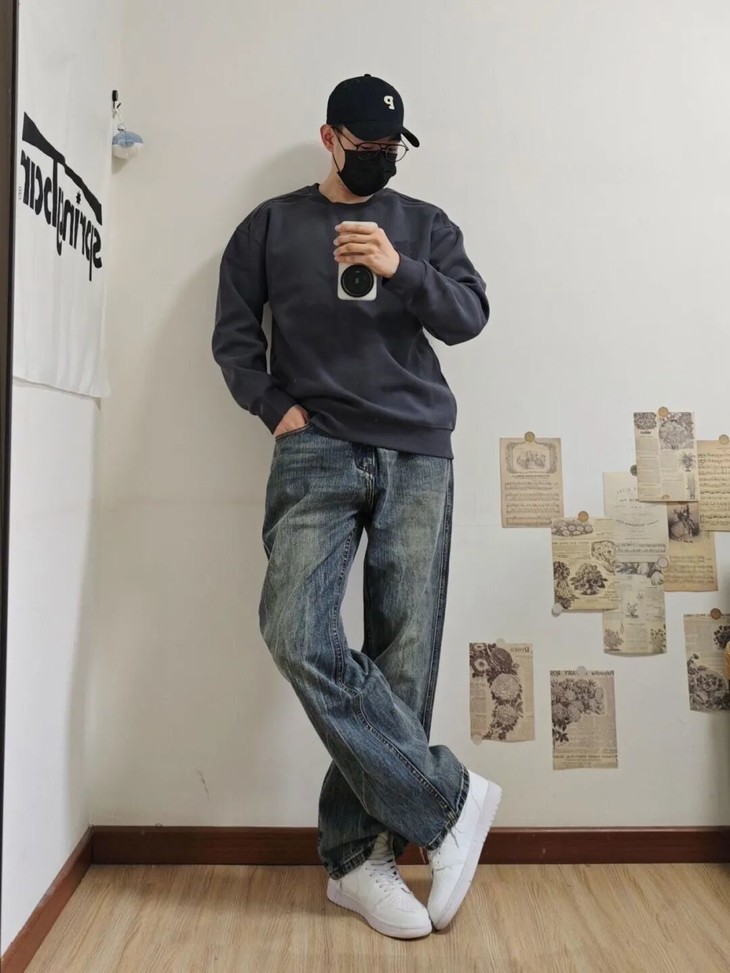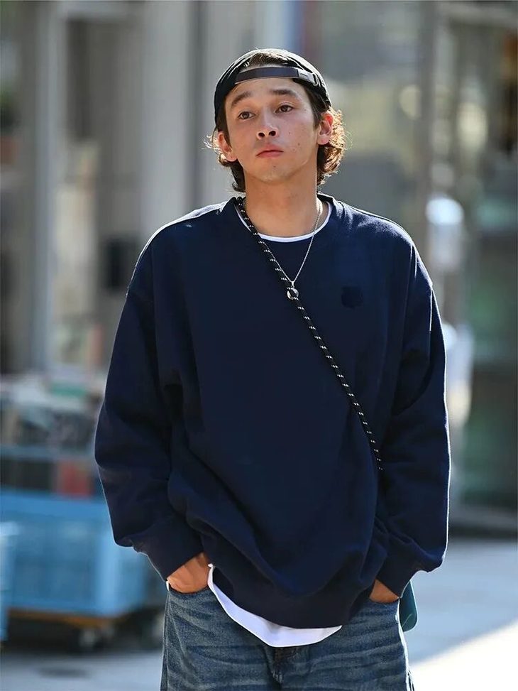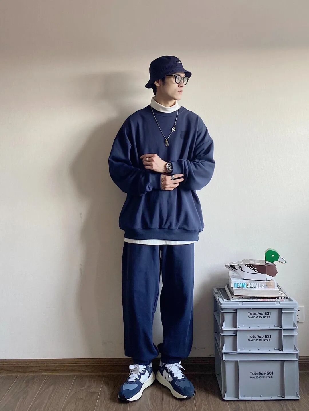 真的很爱圆领卫衣,秋冬里面穿保暖内衣,或者T+衬衫,穿上一双NB复古鞋,轻松搭出oversize休闲风。