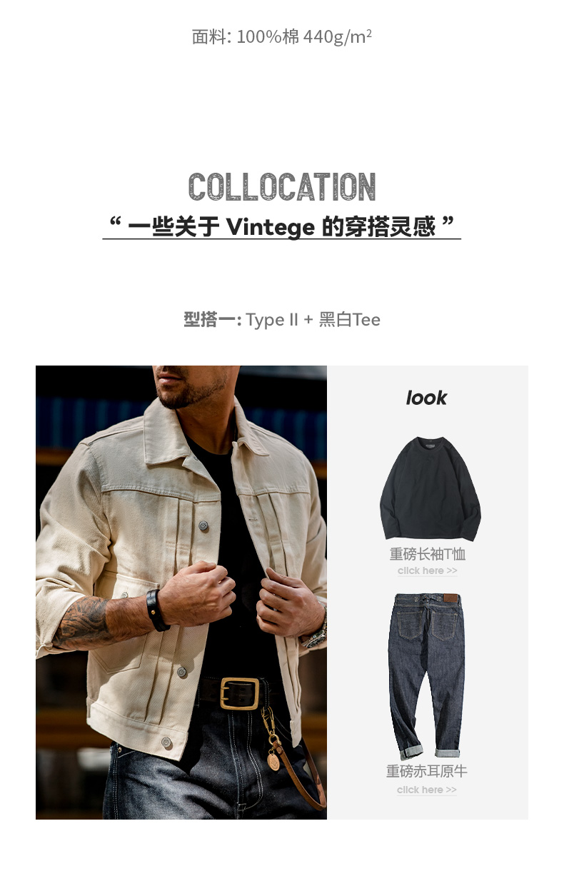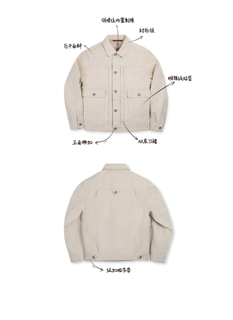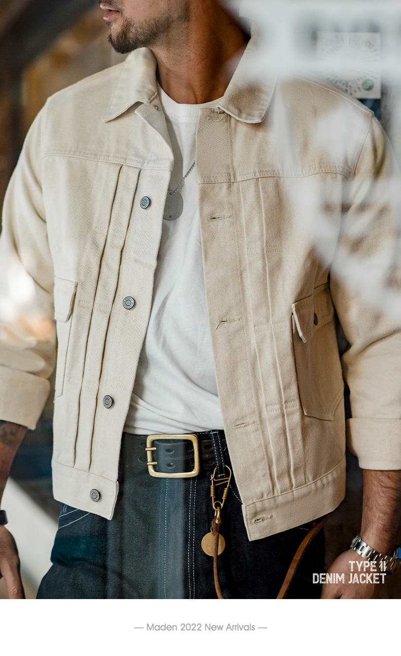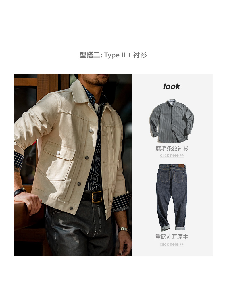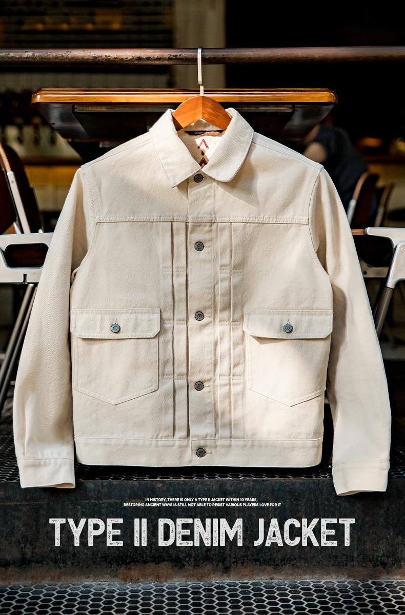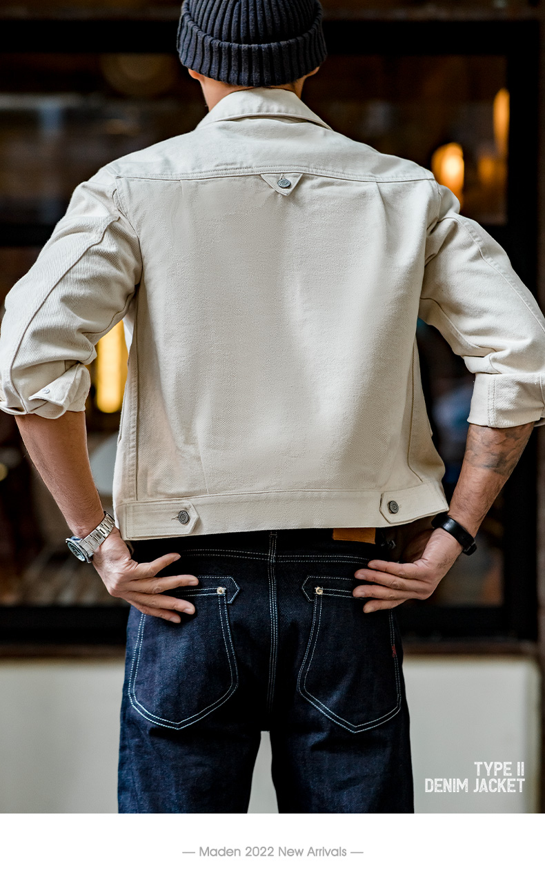 工装优选 美式复古二代牛仔夹克阿美咔叽米白色水洗丹宁外套男秋