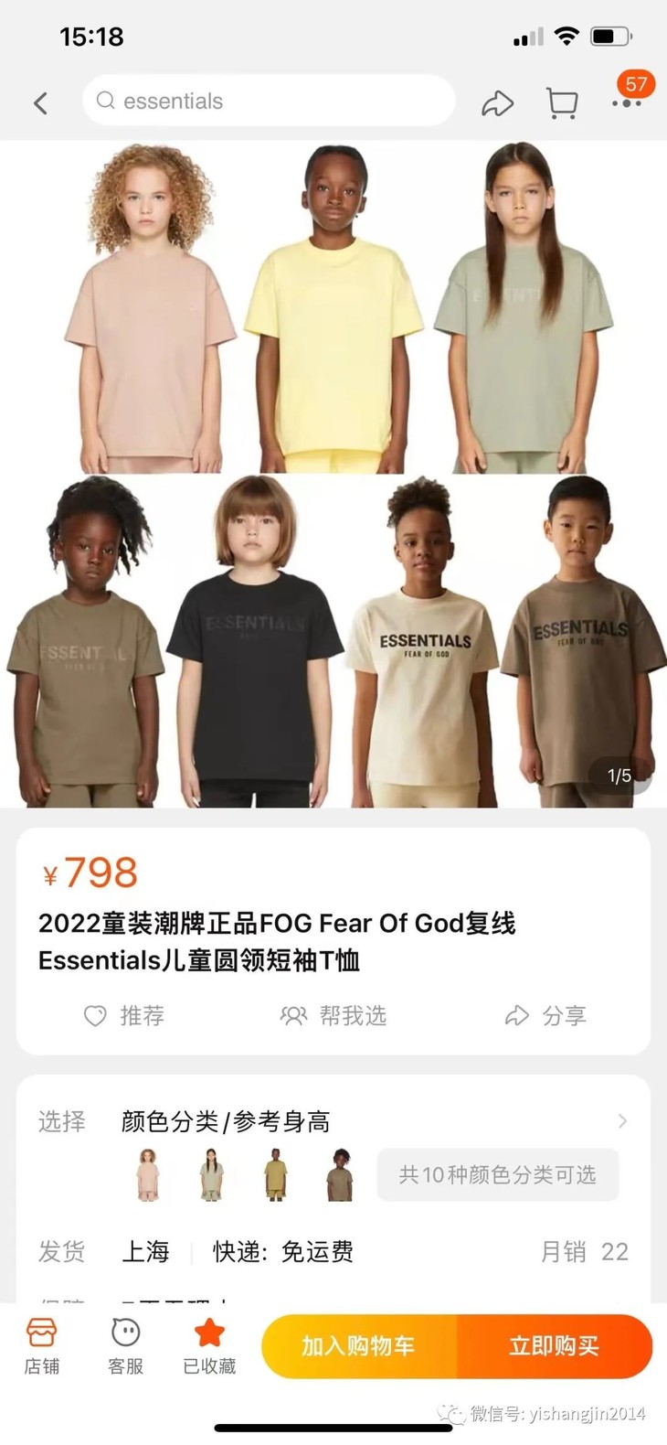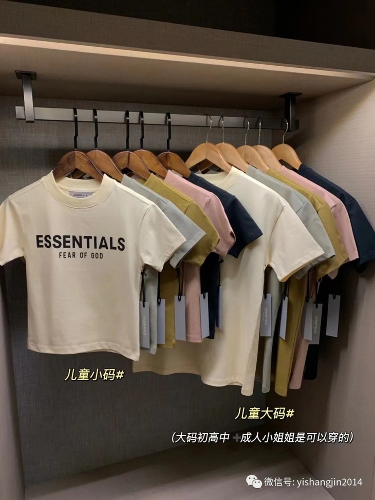 FOG复线essentials 儿童短袖tee,官网售价大概499-699左右,实在是太火了,代购基本炒到700多了,因为这款tee可以配亲子,小童大童都可以穿,不太胖的妈妈也可以穿,实用面特别广,价位又比成人同款便宜了很多。