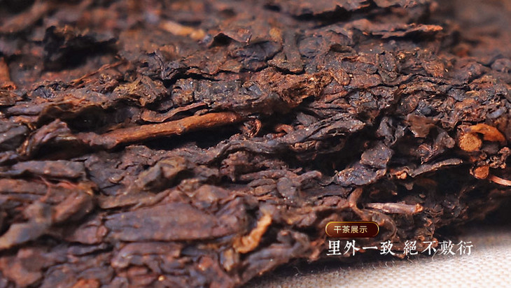 此款老茶为13年出厂的原料经过反复筛分、人工捡杂、经典设备检出灰分,茶质非常干净,3级料压制,里外一口料,不撒面,里外品质如一,纹理清晰可见。