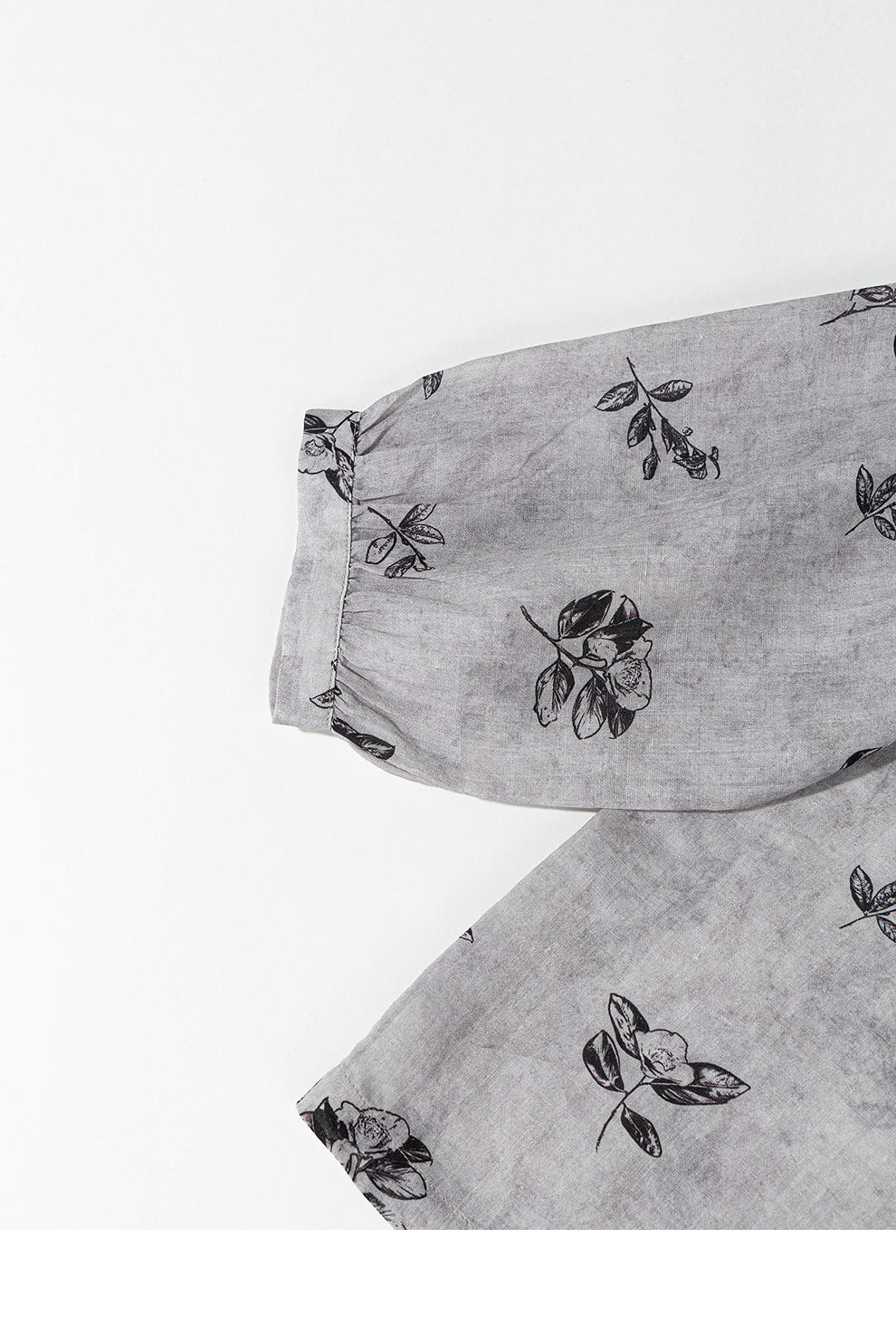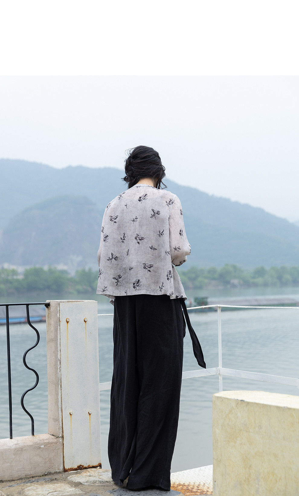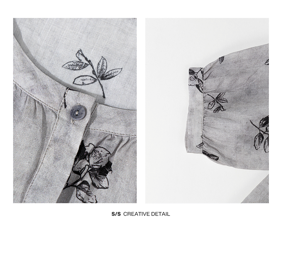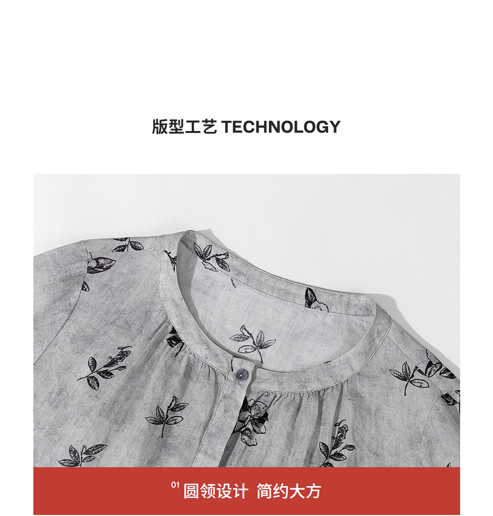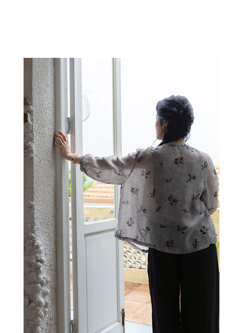 绽放旅行女装346朵/原创印花苎麻天丝正常肩七分袖开襟衬衫女开衫