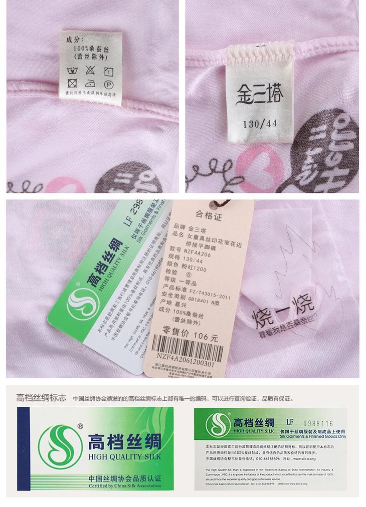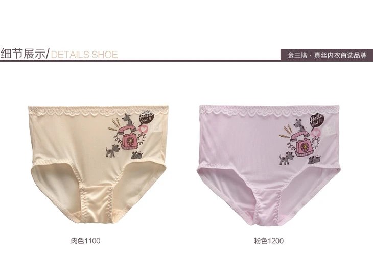 金三塔女童儿童100%桑蚕丝真丝透气印花中腰平脚裤(私密物品不支持退换)NZF4A206