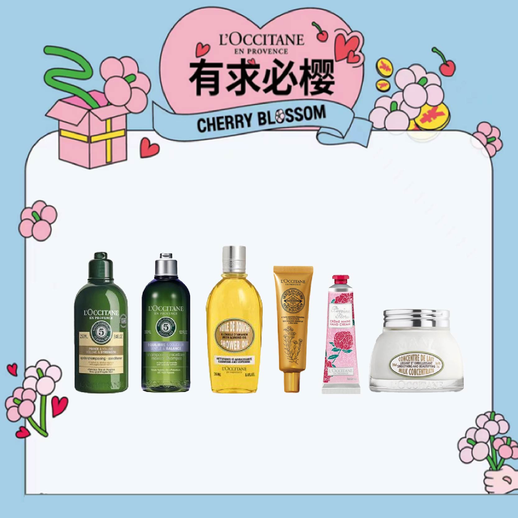 【1F】欧舒丹护肤套装:草本菁纯平衡洗发露300ml+草本菁纯平衡护发素250ml+芍药花香润手霜75ml+乳木果腊菊颈部精华霜50ml+甜扁桃紧致沐浴油250ml+甜扁桃紧致弹润美肤乳200ml