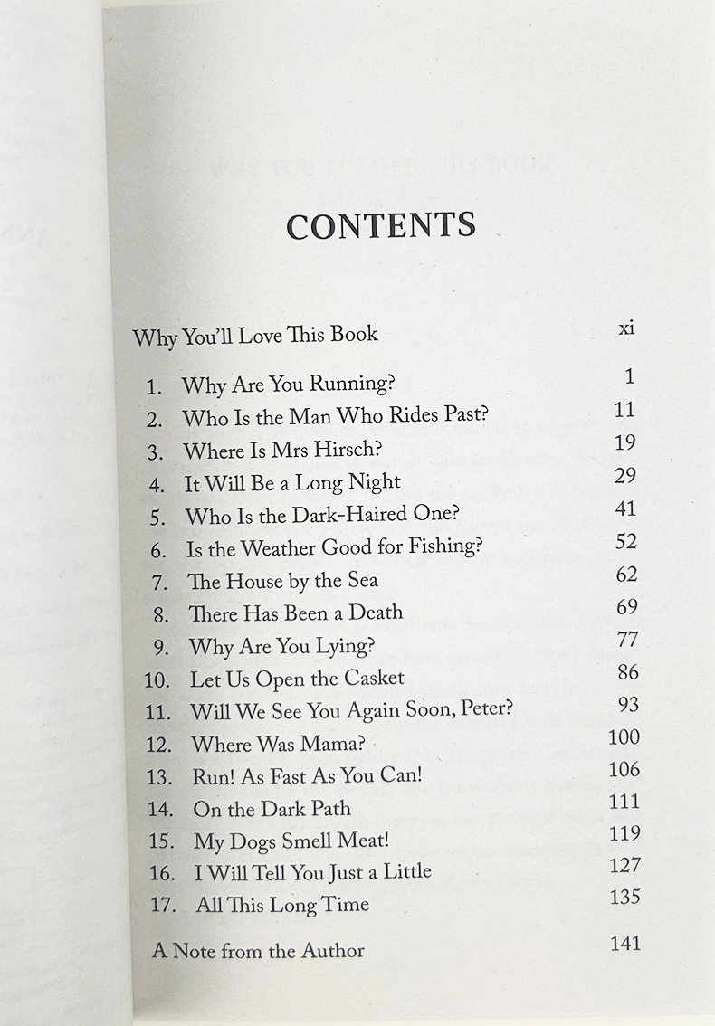 “Why are you running?” the harsh voice asked. His Danish was very poor. Three years, Annemarie thought with contempt. Three years they’ve been in our country, and still they can’t speak our language.