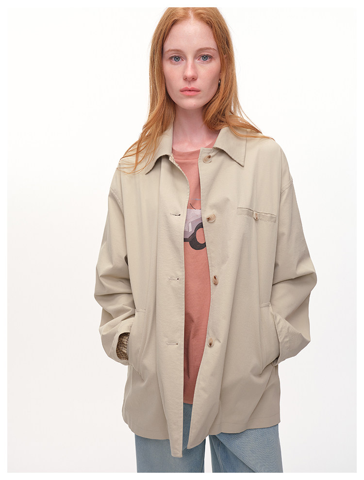 UMILAB|诺丁山*复古miu系100%棉轻量k皱双面穿中长廓形外套C1015V
