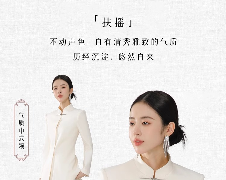 扶摇 国风白色西装套装女2024新款设计感改良唐装西服外套春