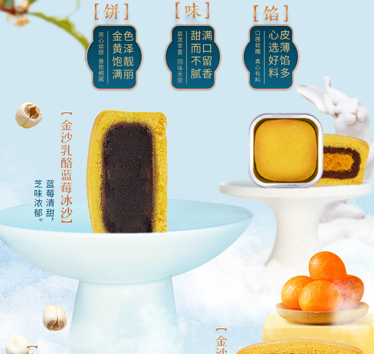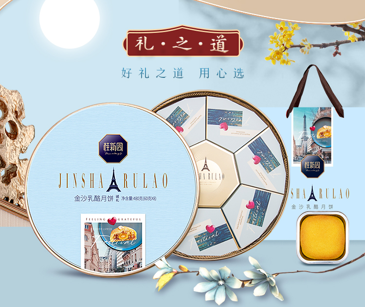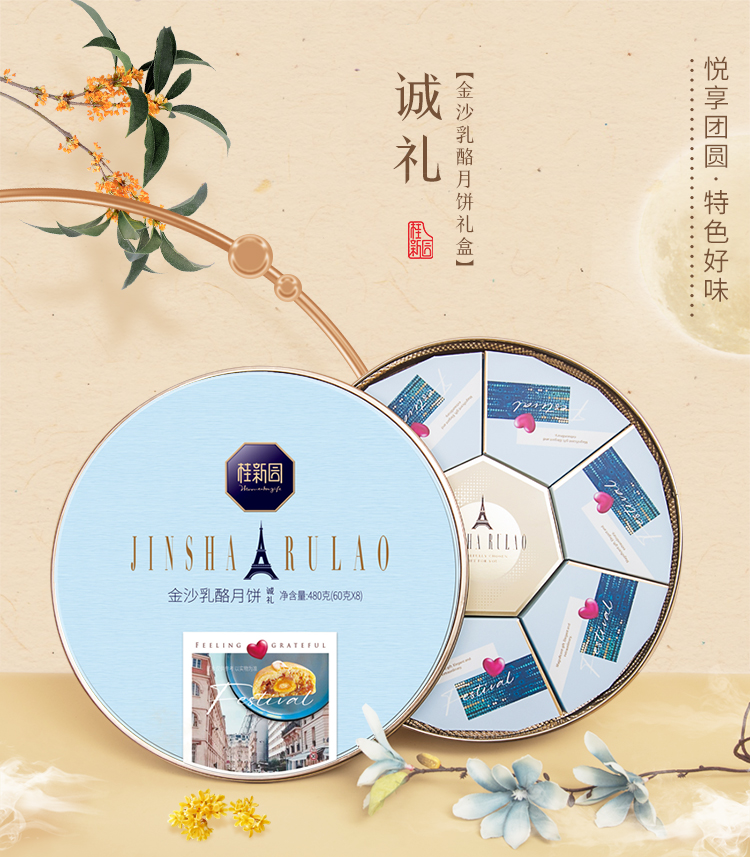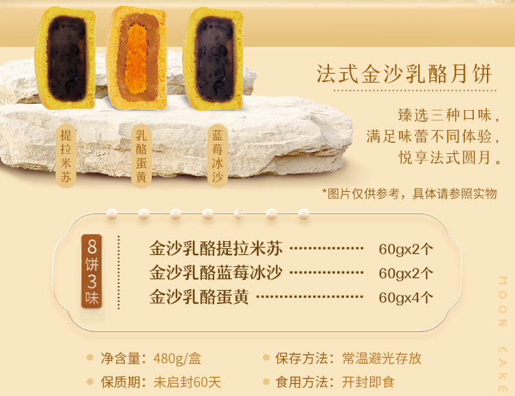 【诚礼】中秋月饼礼盒伴手礼金沙乳酪特色月饼3种口味8枚入