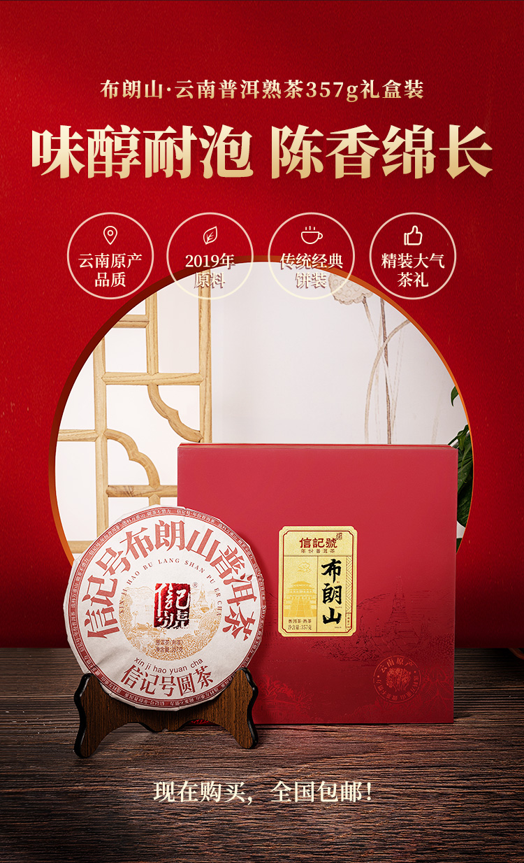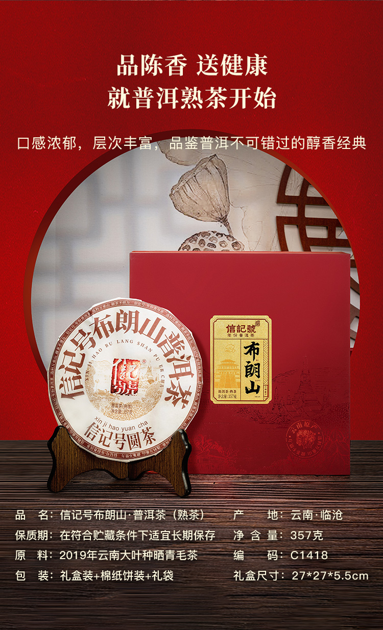 八马茶业 | 信记号普洱茶云南布朗山普洱熟茶勐海产区茶礼盒装357g