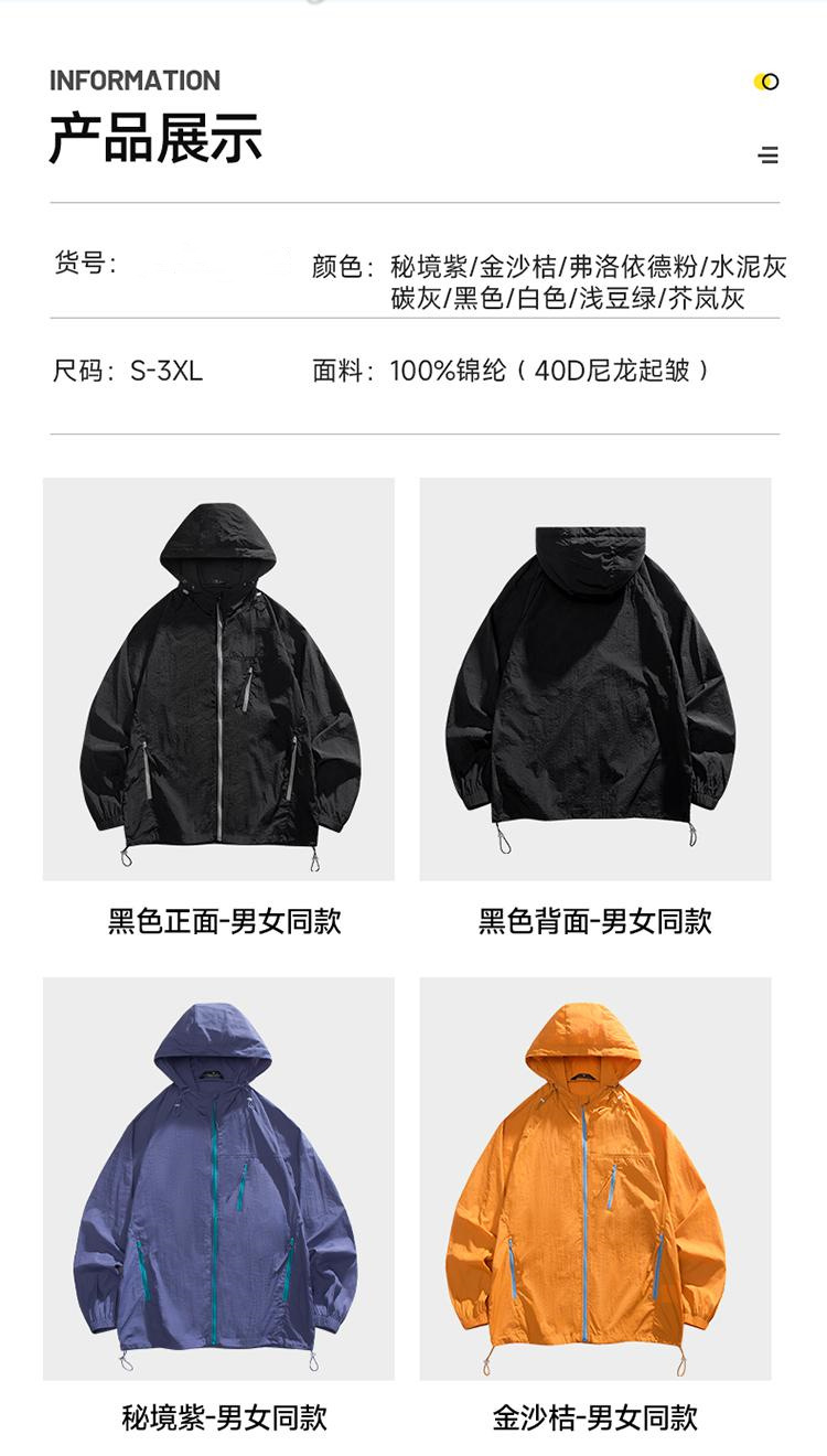 户外防紫外线!轻薄透气速干凉感原纱防晒衣女夏2025新款情侣皮肤衣!