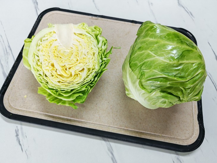 菜很新鲜,水分足,它比普通包菜的结球更加紧实,颜色更偏亮绿色或娇嫩,叶片看起来更轻薄透明一些。而且应该是经过品种改良的缘故,这个菜的口感比普通包菜更为脆甜多汁。