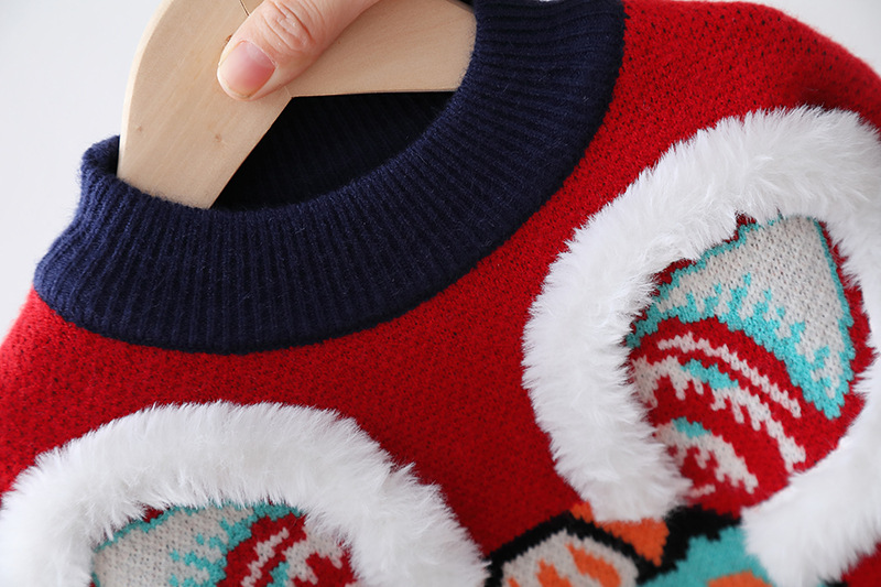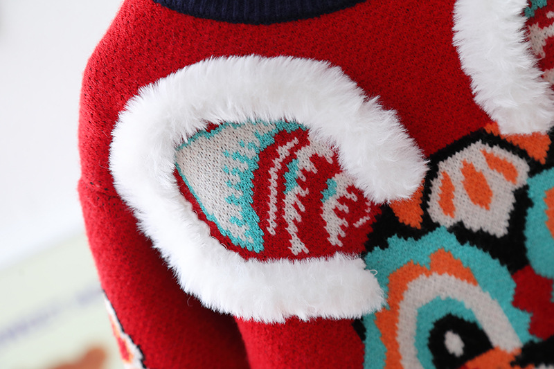 【新年毛衣】男女童加绒加厚新年毛衣2022年冬新款大红喜庆卡通毛绒兔