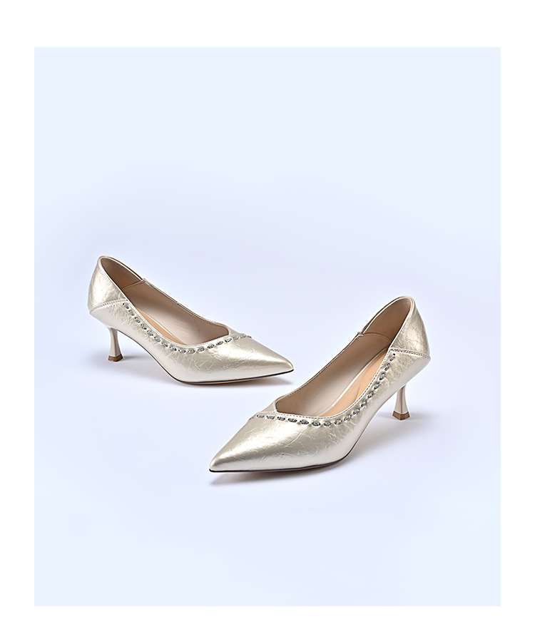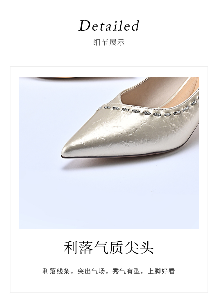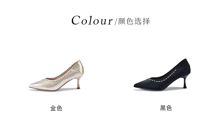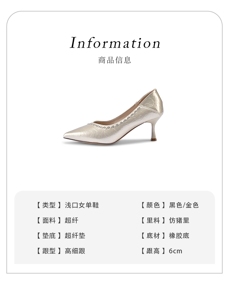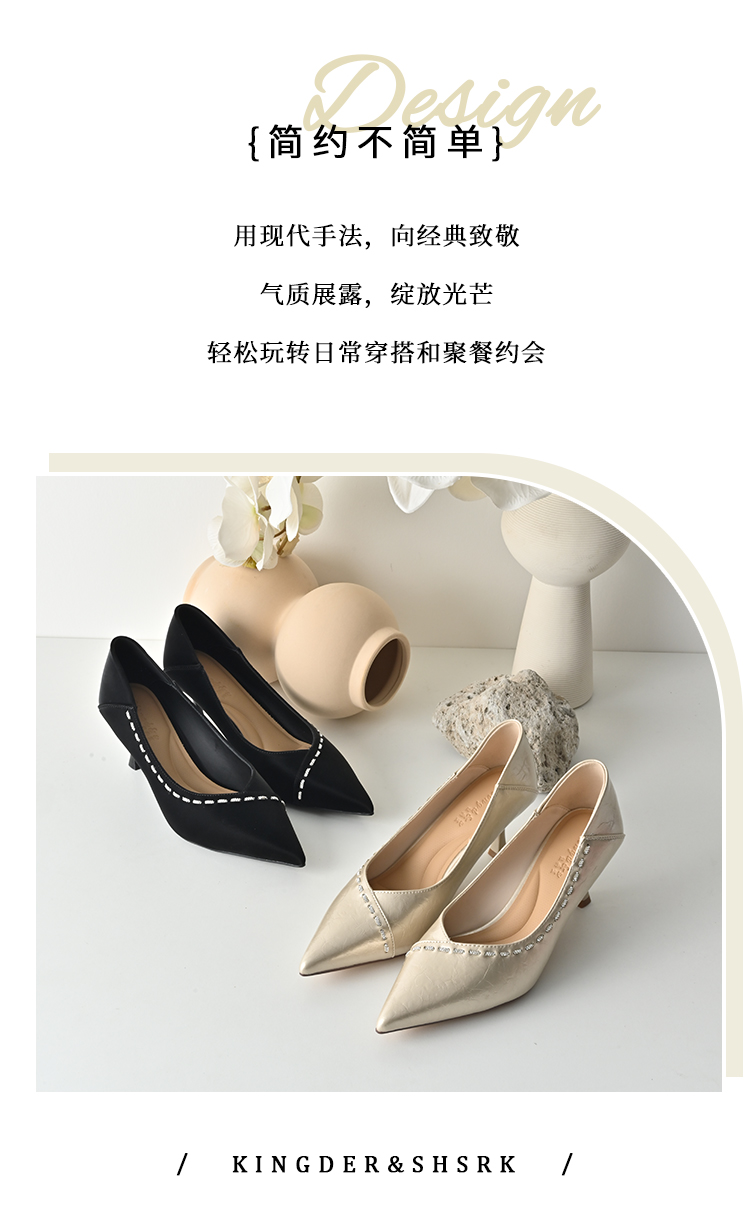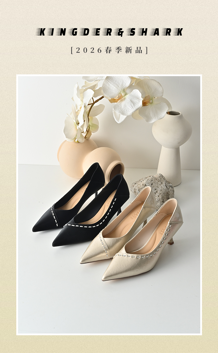 经典鲨2026年春专柜新品6cm气质尖头高细跟水钻高跟鞋单鞋女KW127-617011