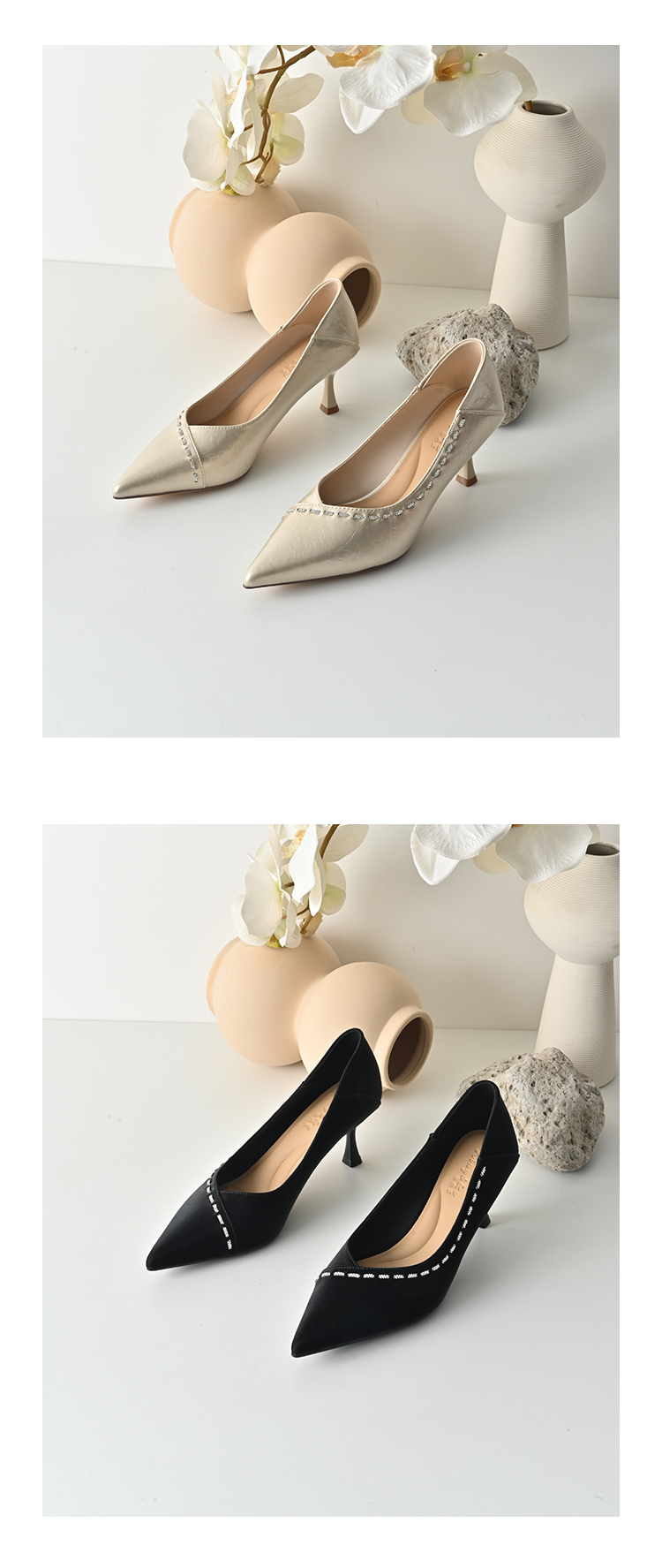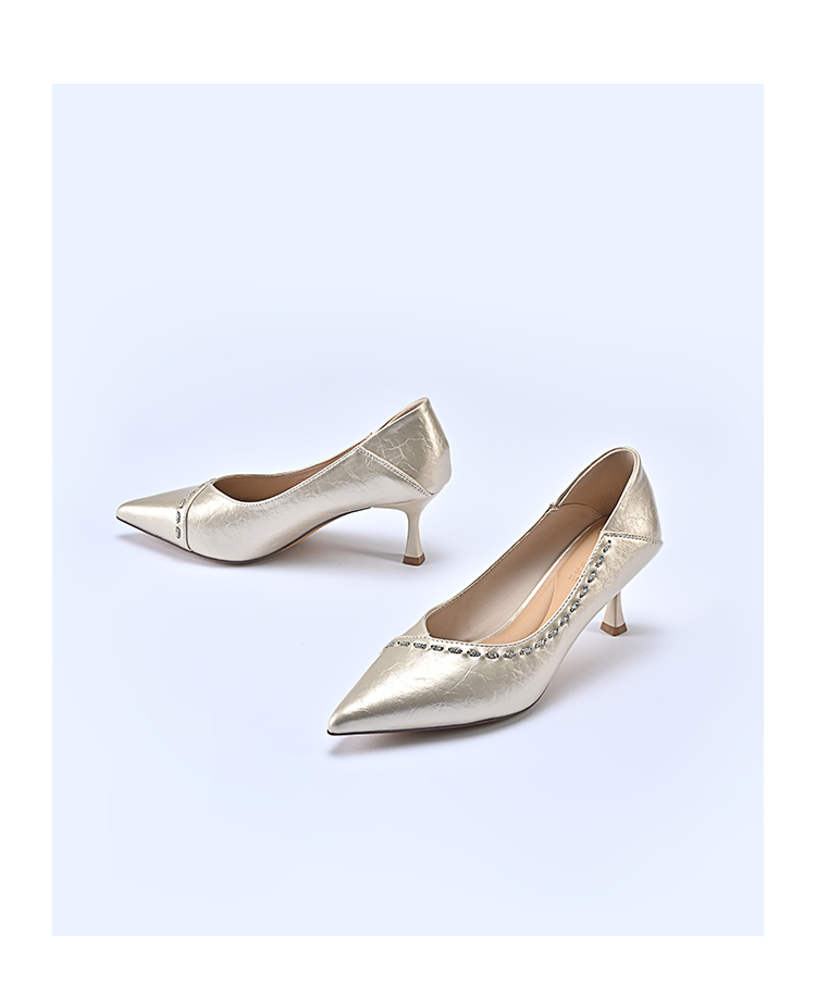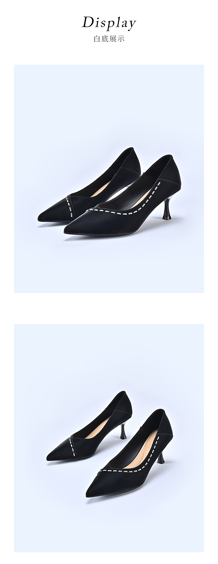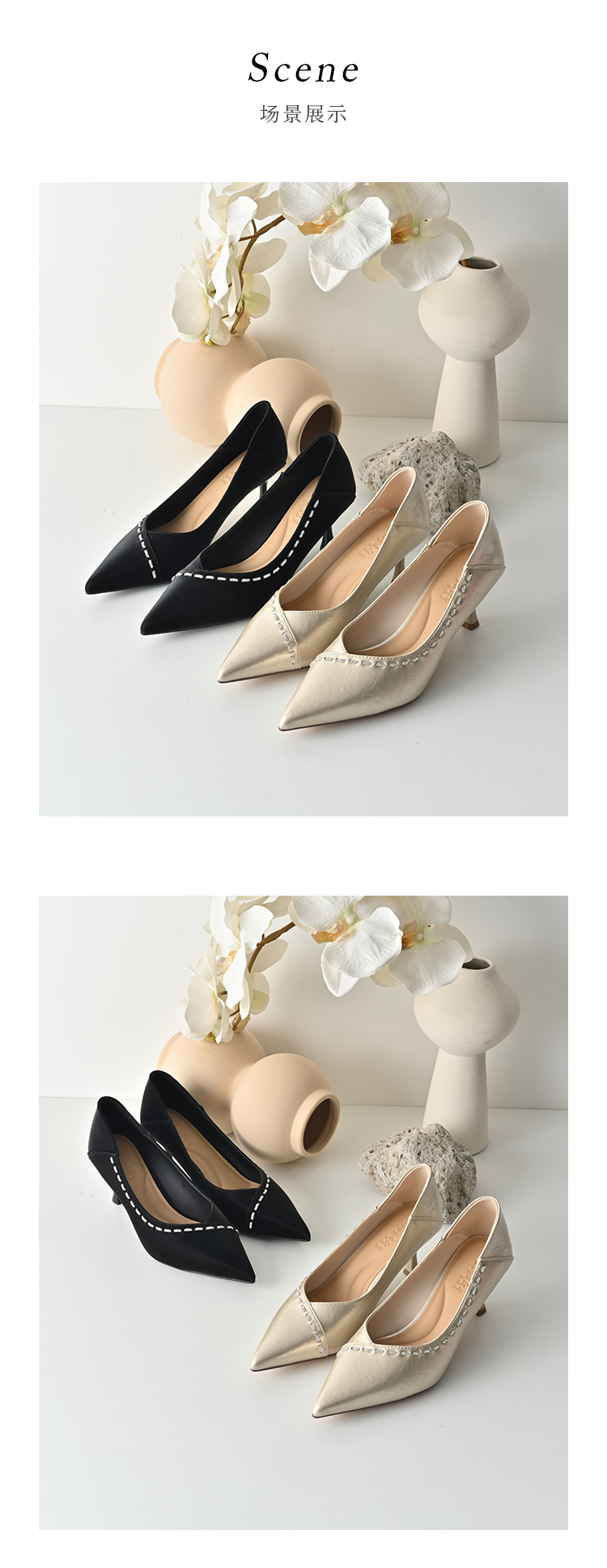 经典鲨2026年春专柜新品6cm气质尖头高细跟水钻高跟鞋单鞋女KW127-617011