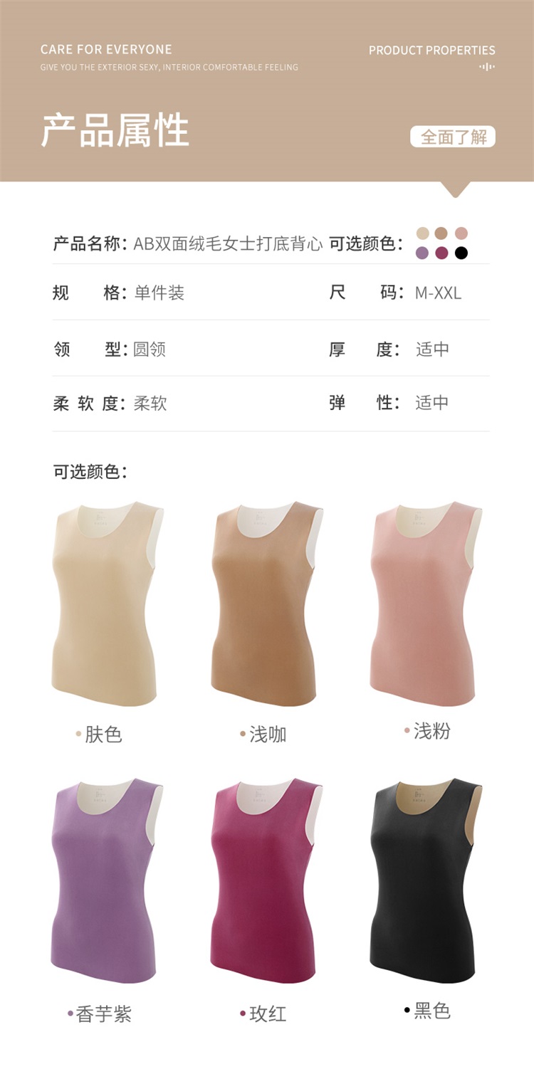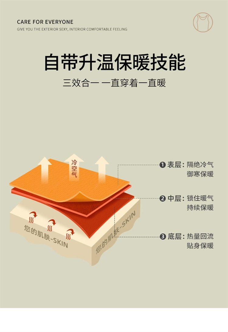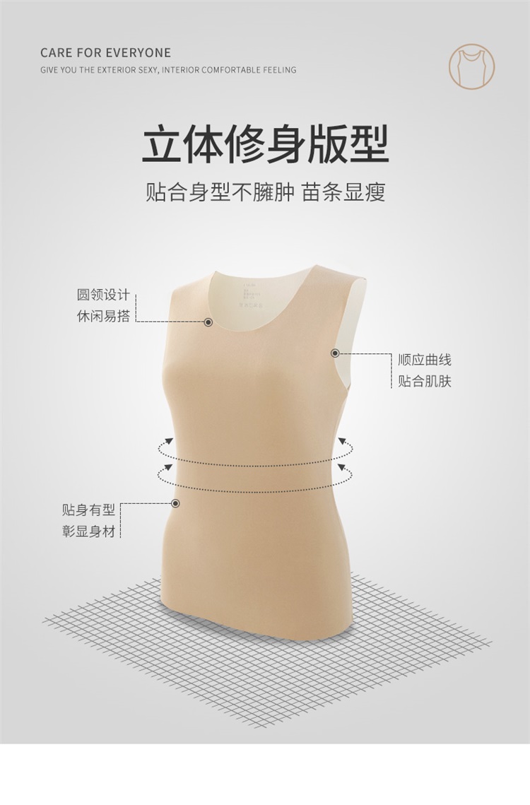 雅黛丽女士速热抗寒无痕贴身打底背心秋冬内衣保暖上衣