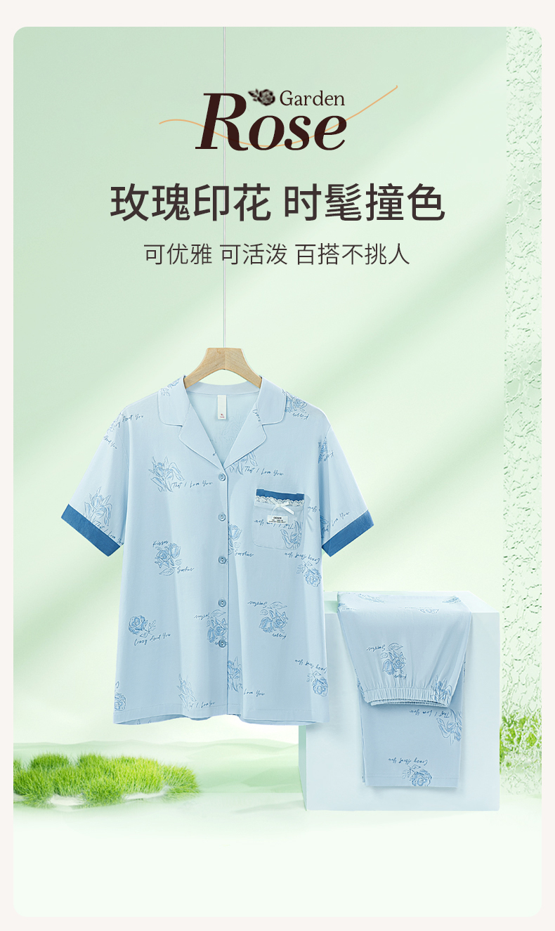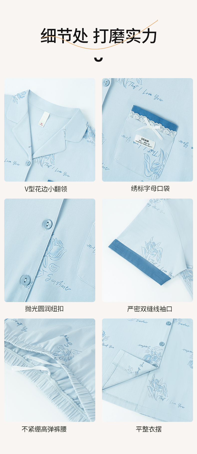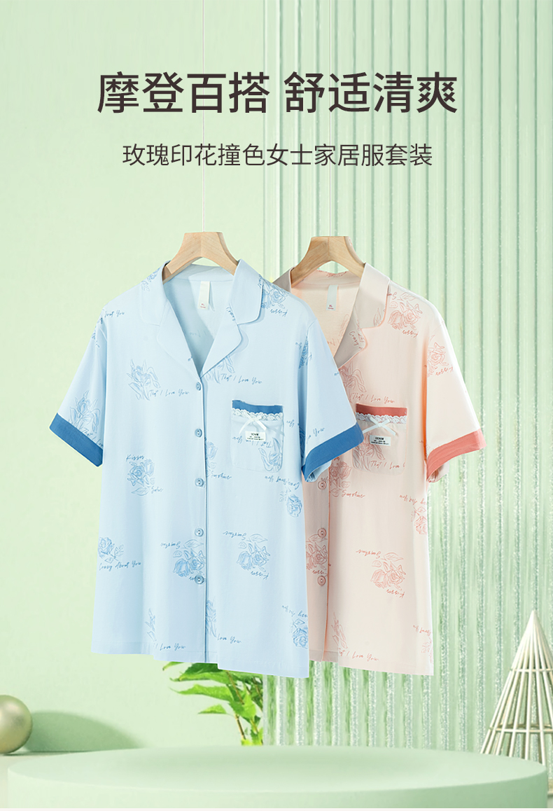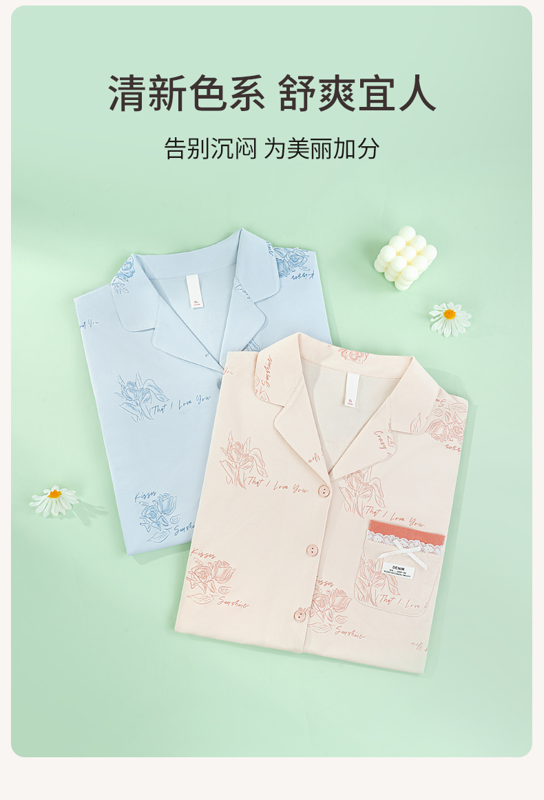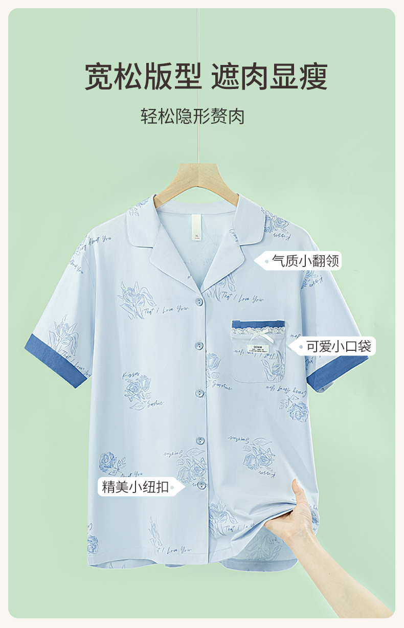雅黛丽睡衣女春夏棉质亲肤透气家居服短袖休闲可外穿套装