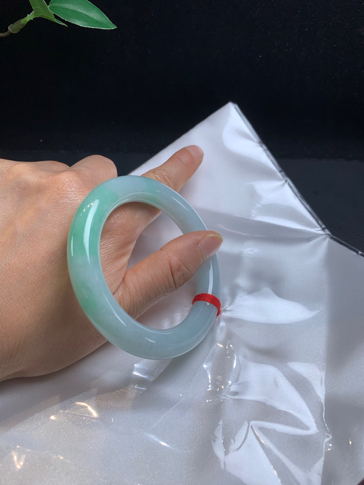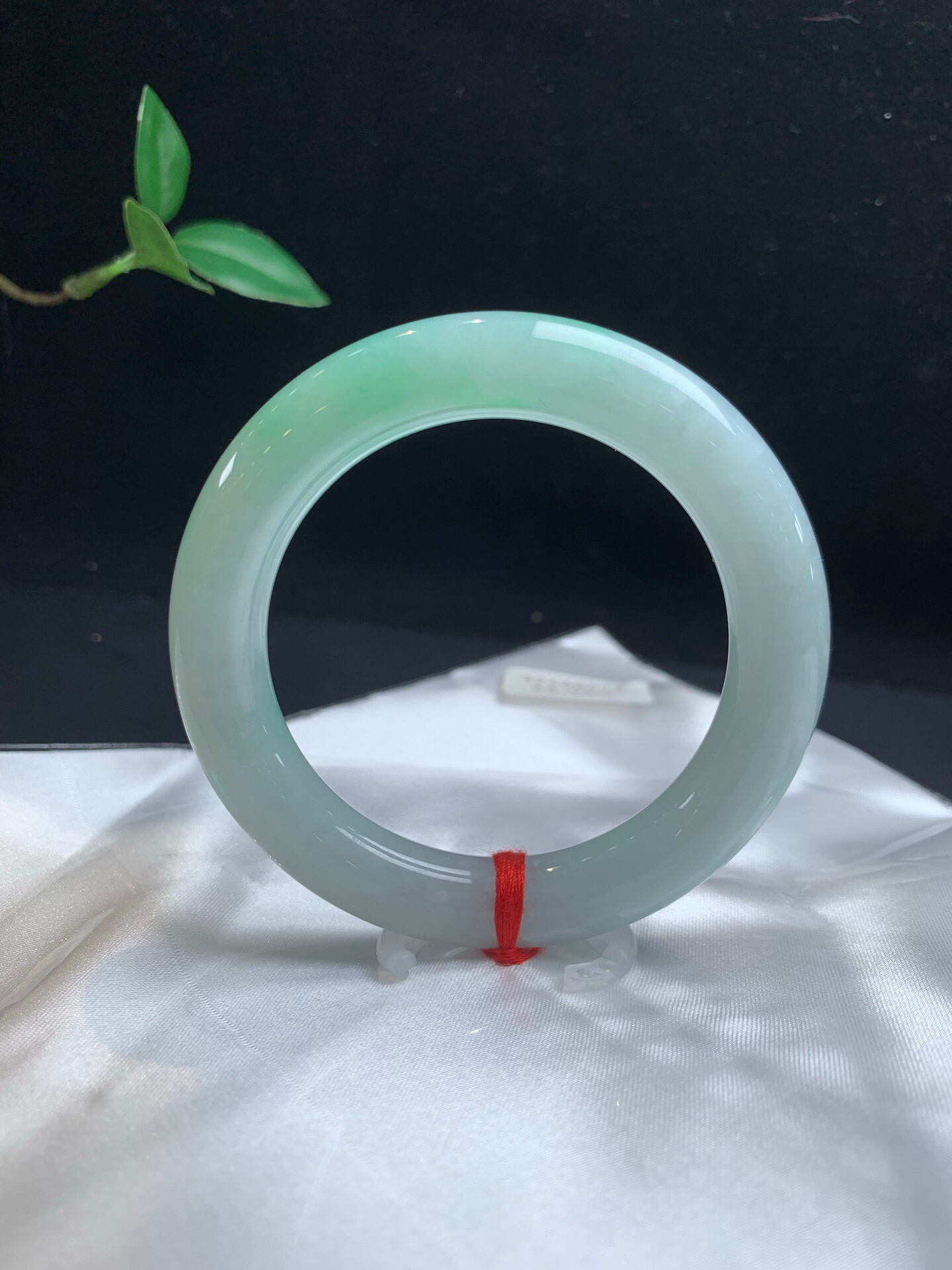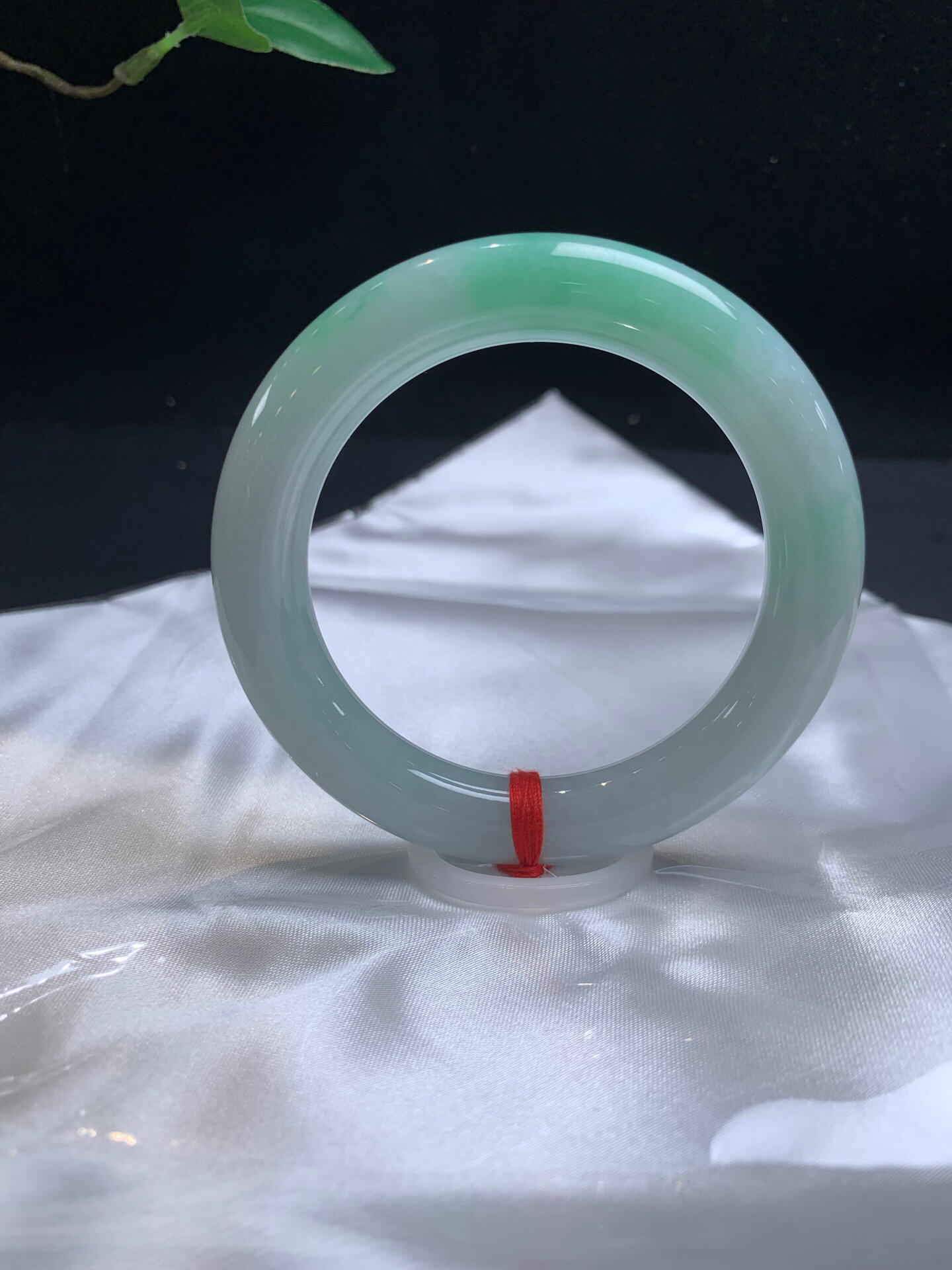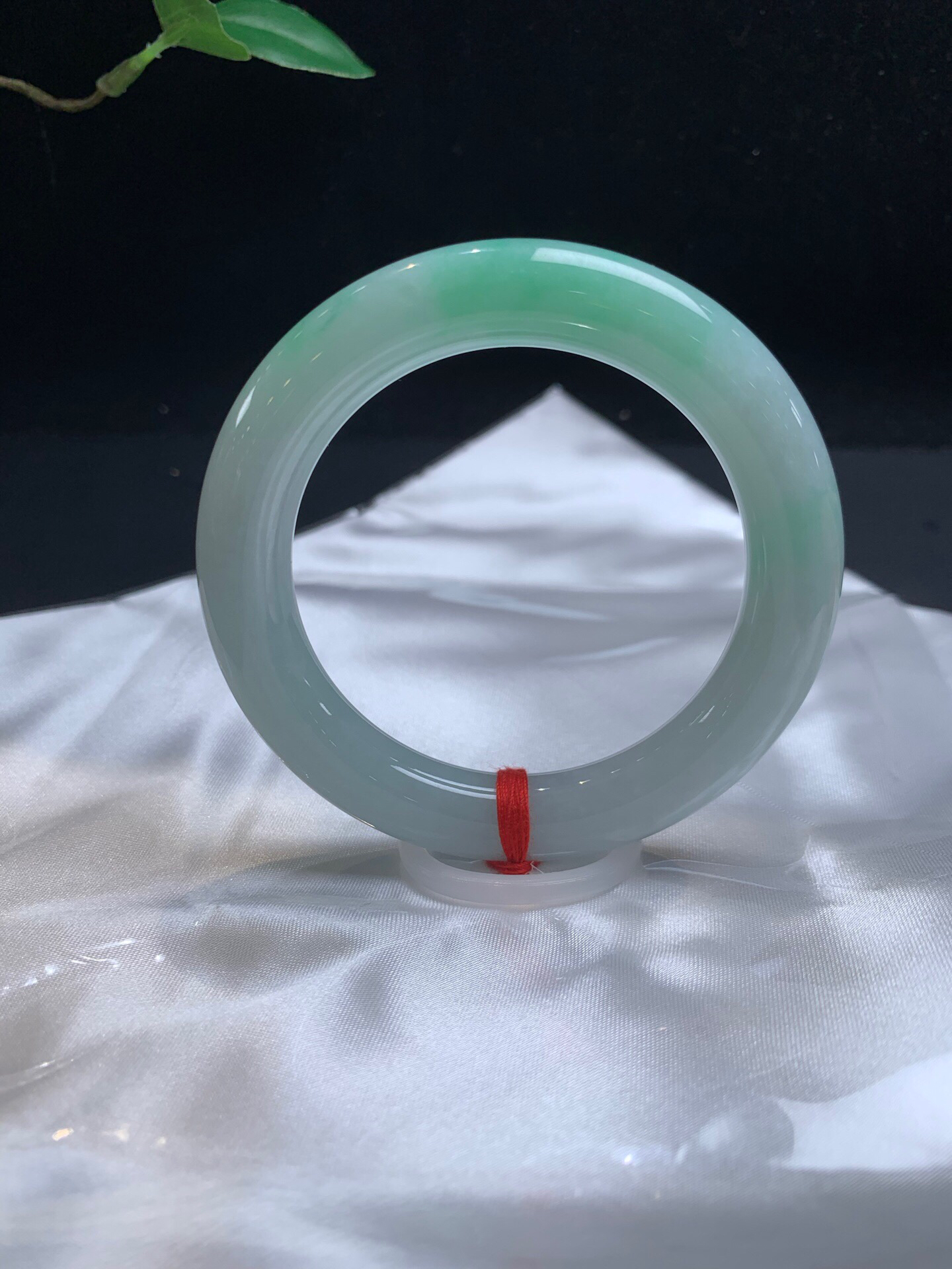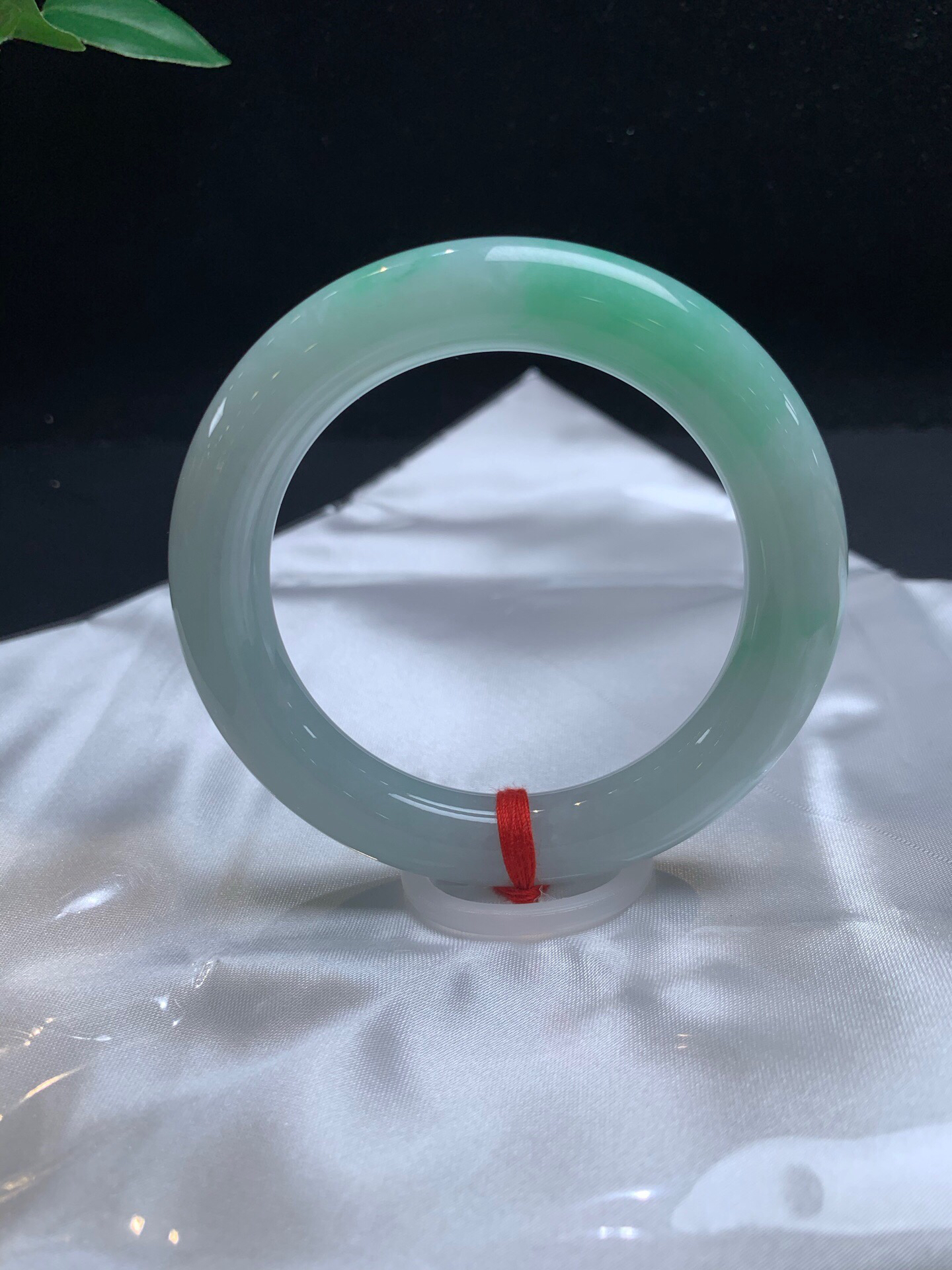 612483,54.8 甜绿底圆条手镯,12mm,条形好,整体很秀气干净,带一截甜绿色,干净完美,超值价💰30200 #优石客珠宝#香玉荟萃