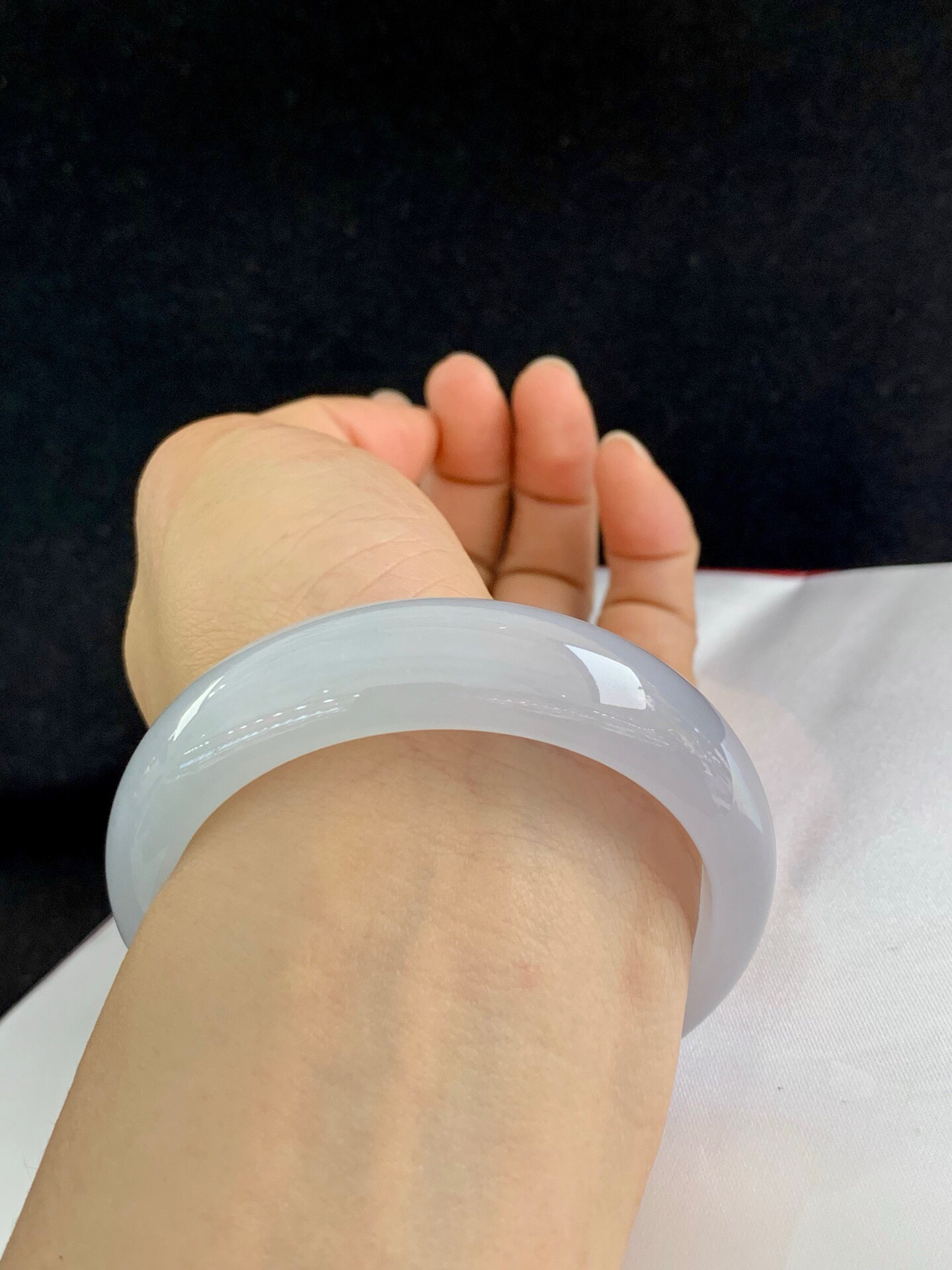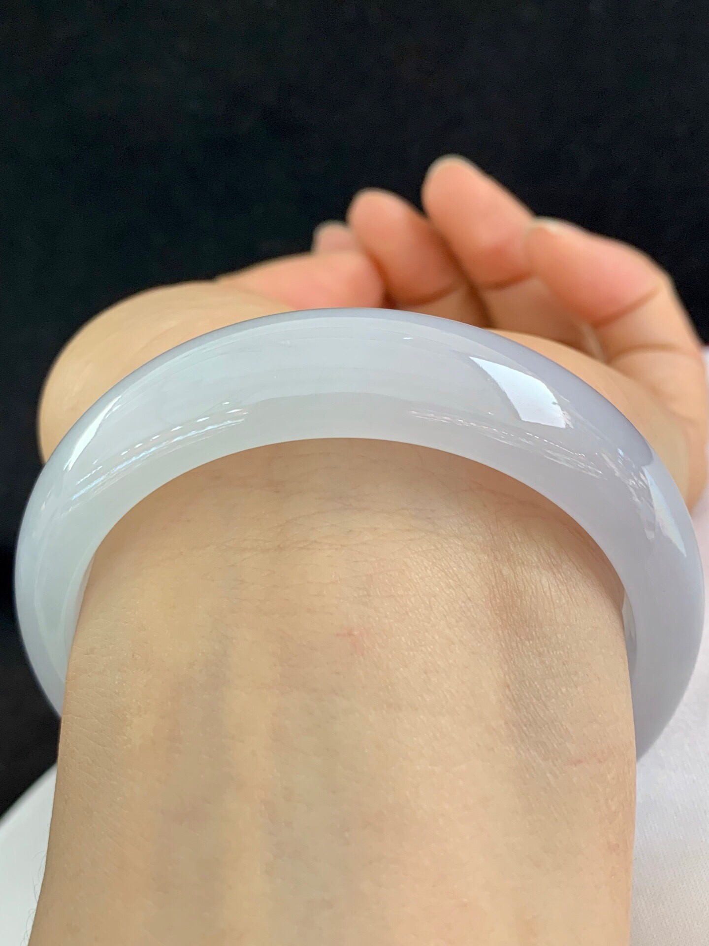 612465,58.2圈口,白冰正圈平安镯,宽版白月光,种老水足,冰润有光感,完美无裂,尺寸:58.2-16.5-8,超值价💰48000 #优石客珠宝#香玉荟萃