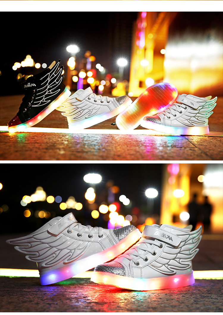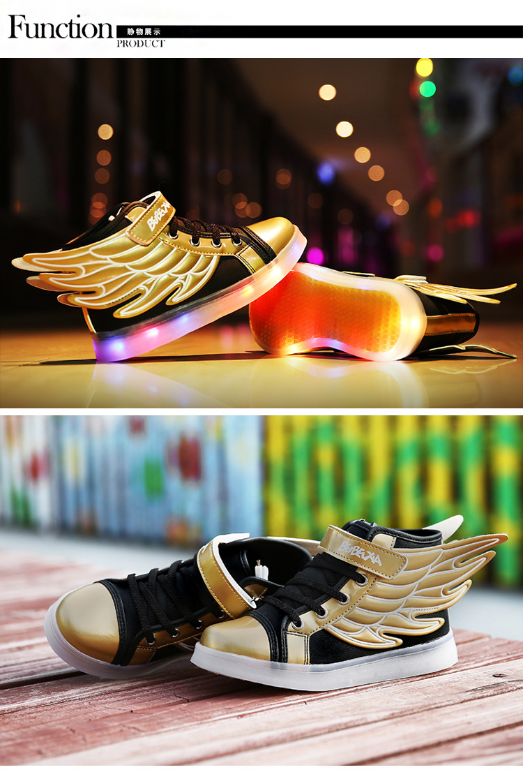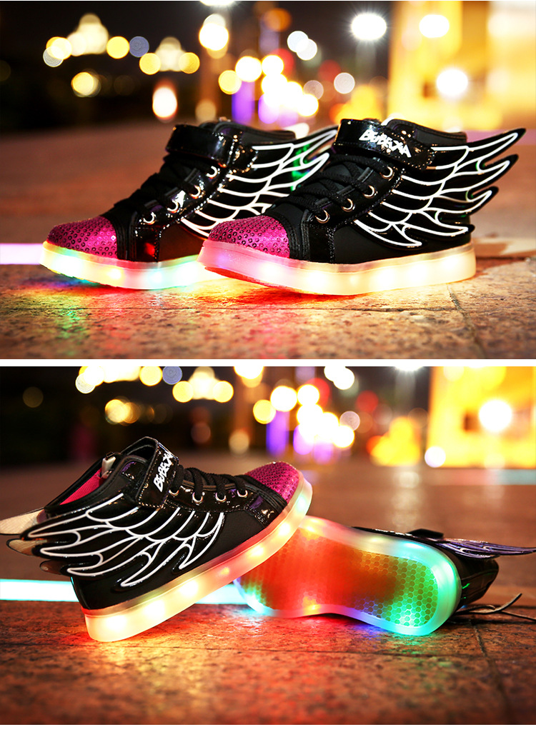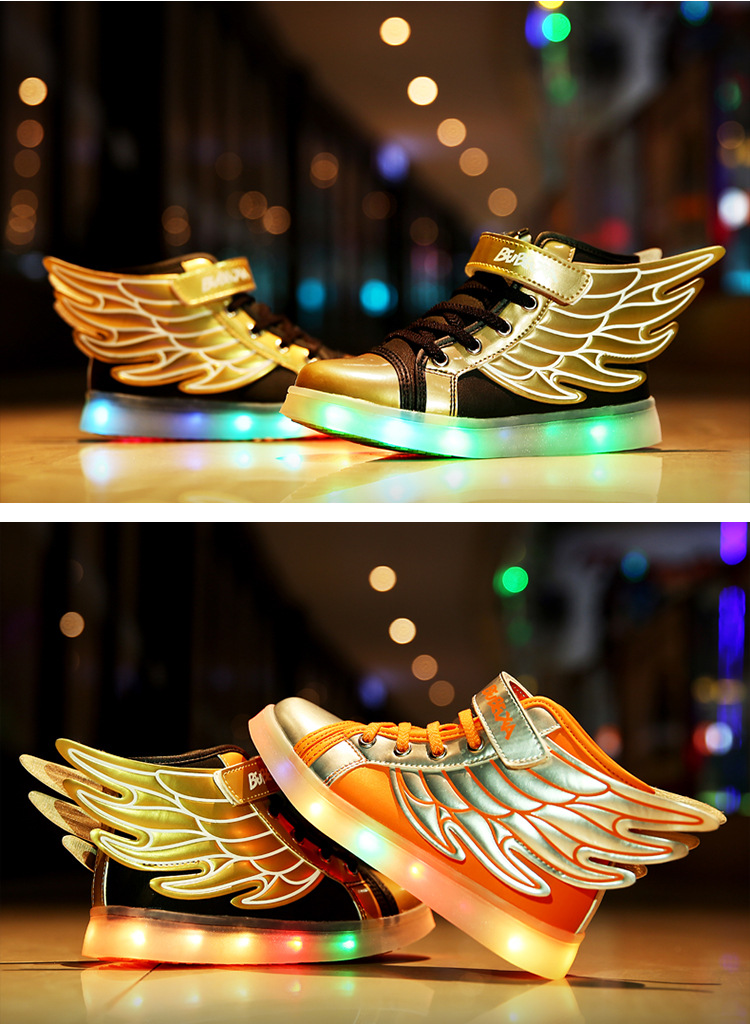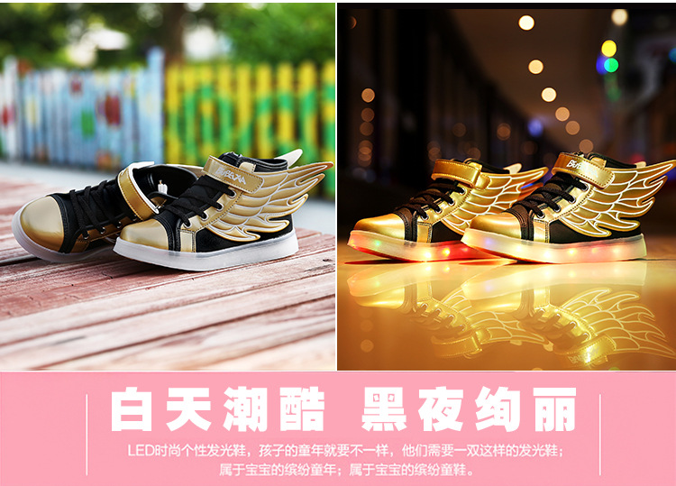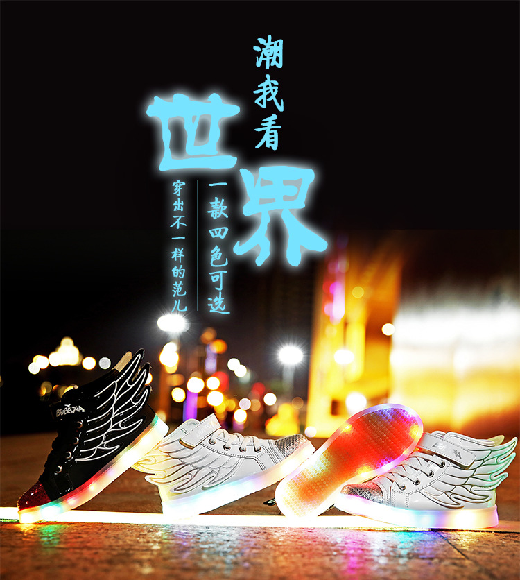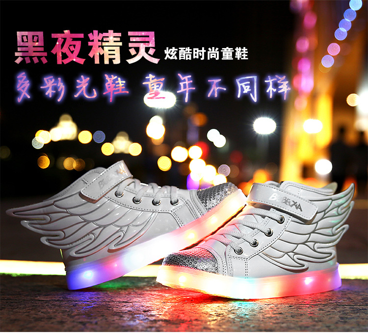 【男女童夜光鞋】USB儿童发光鞋七彩灯鞋LED充电夜光鞋童鞋男童女童翅膀灯鞋