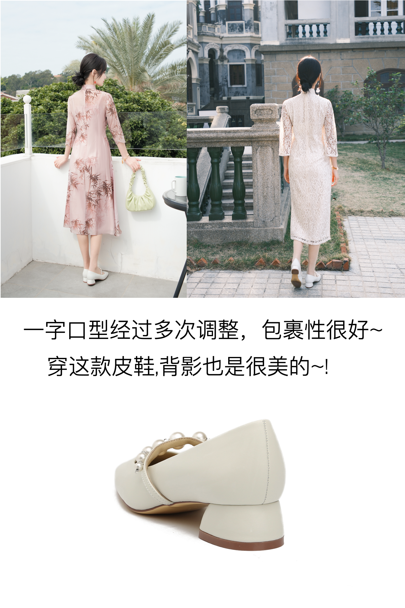 逸红颜小集市#「珍珠玛丽鞋」鞋面、内里、垫脚皆为高奢小羊皮, 错落有致的珍珠点缀,温柔雅致,你的旗袍必备单鞋