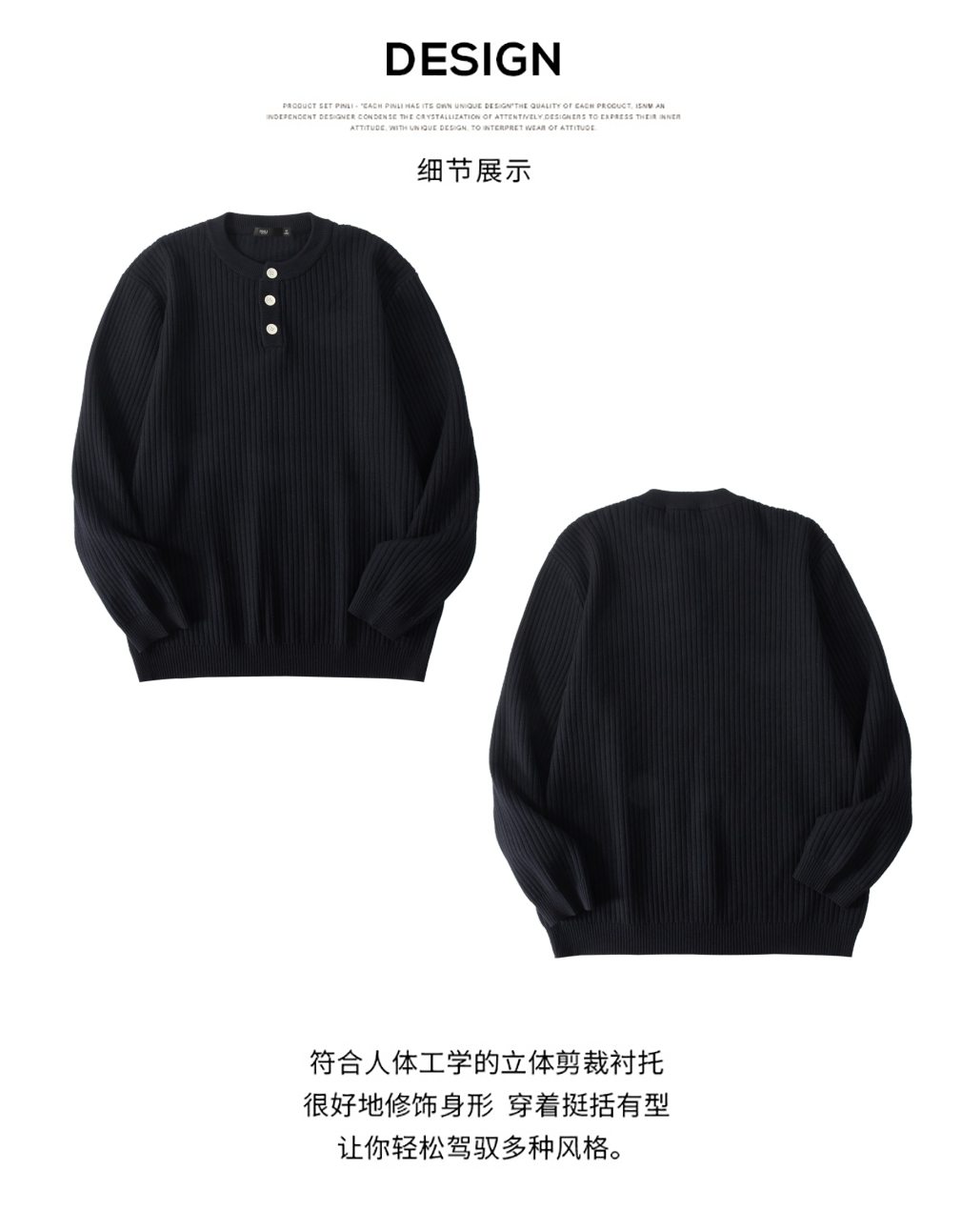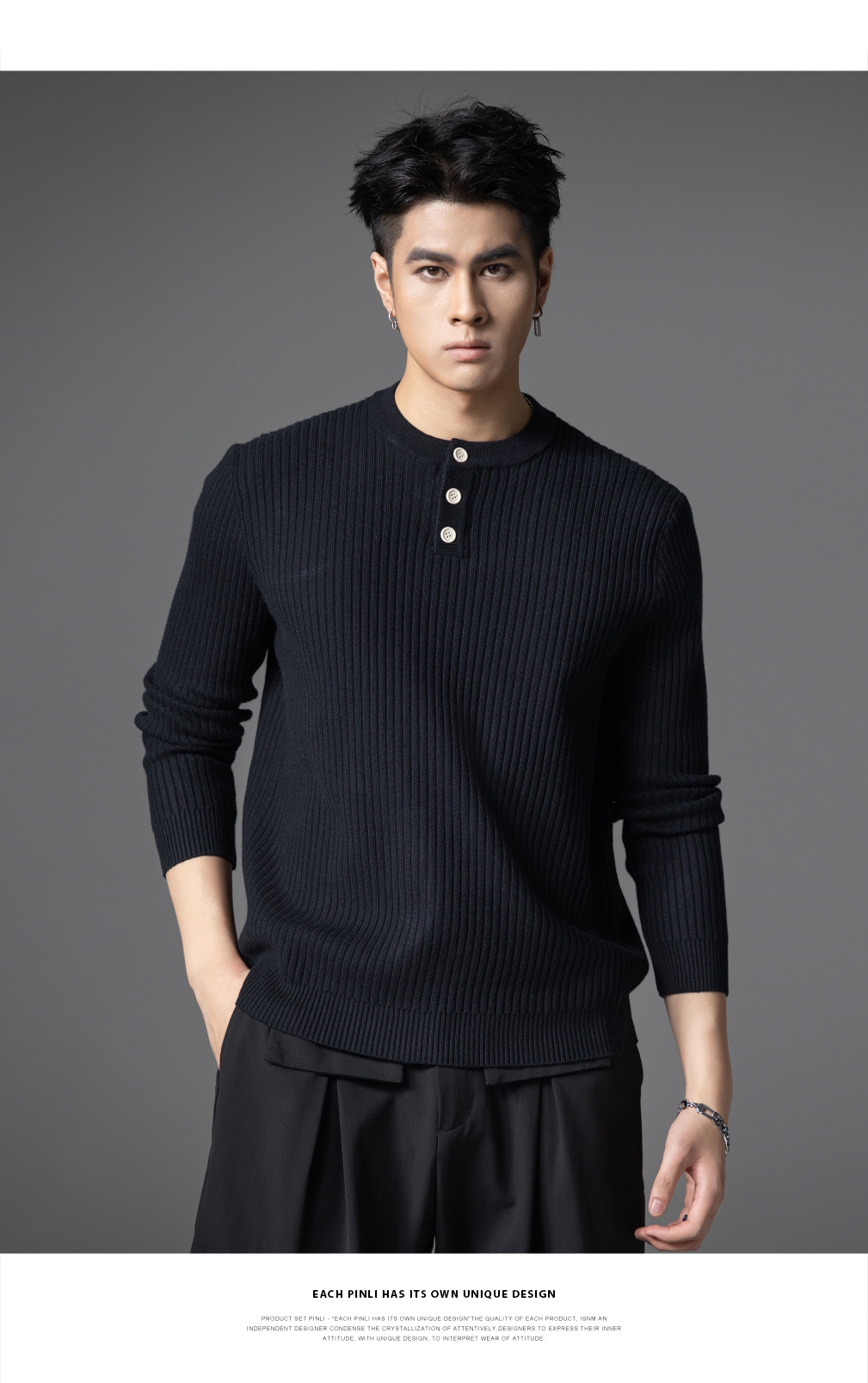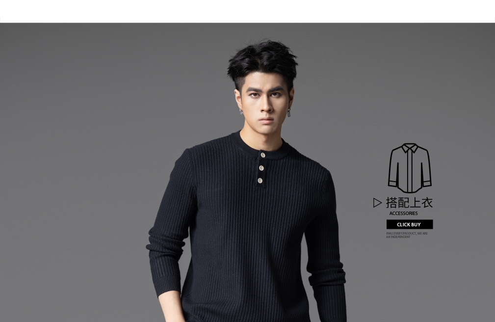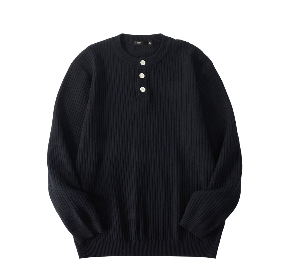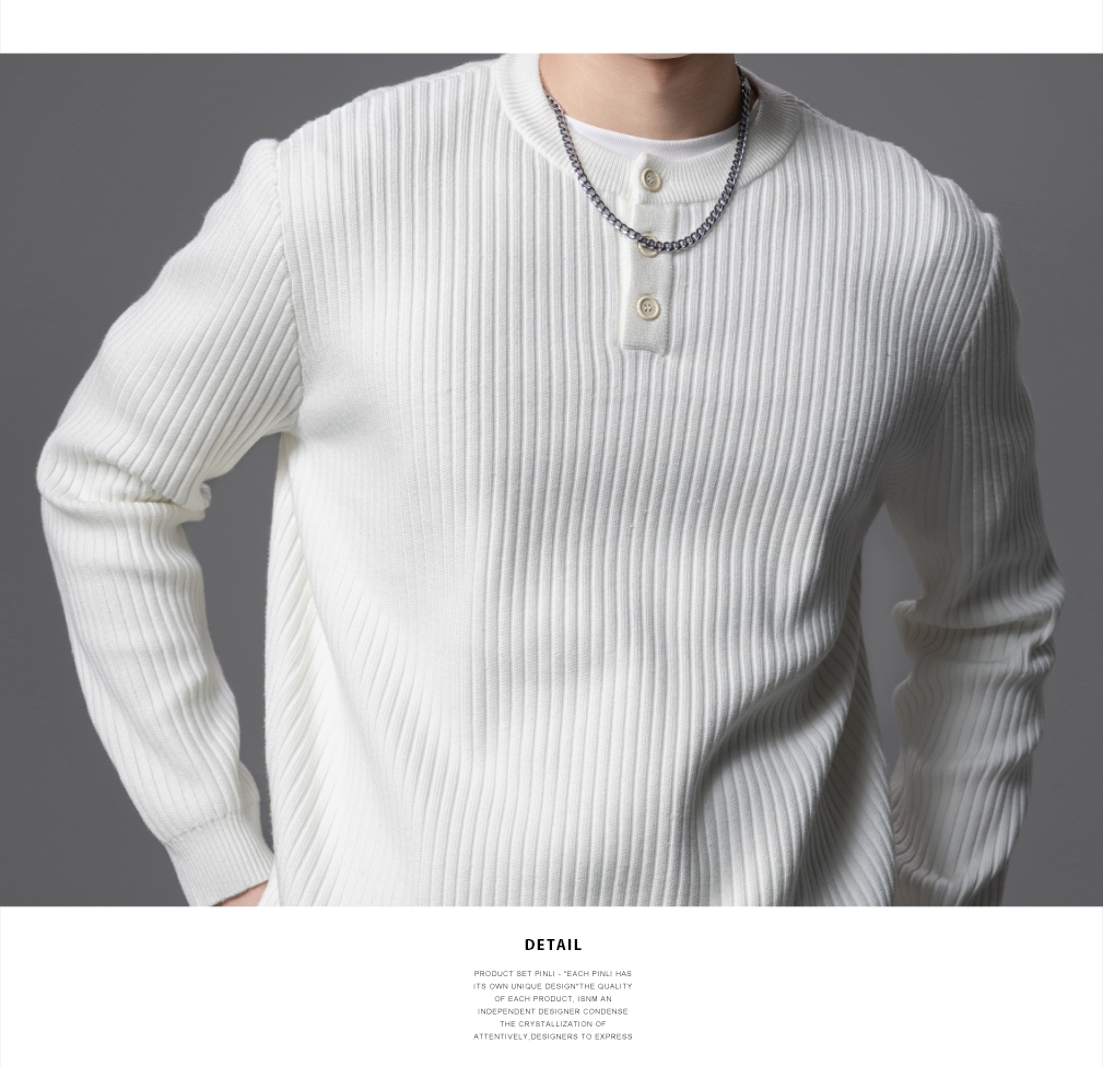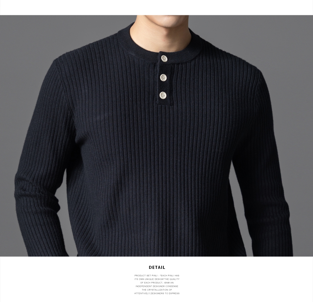 PINLI品立2025秋季新款男条纹提花毛衣打底圆领扣子门襟针织衫潮GD253110079