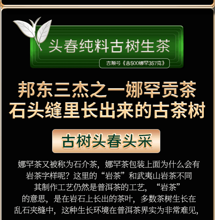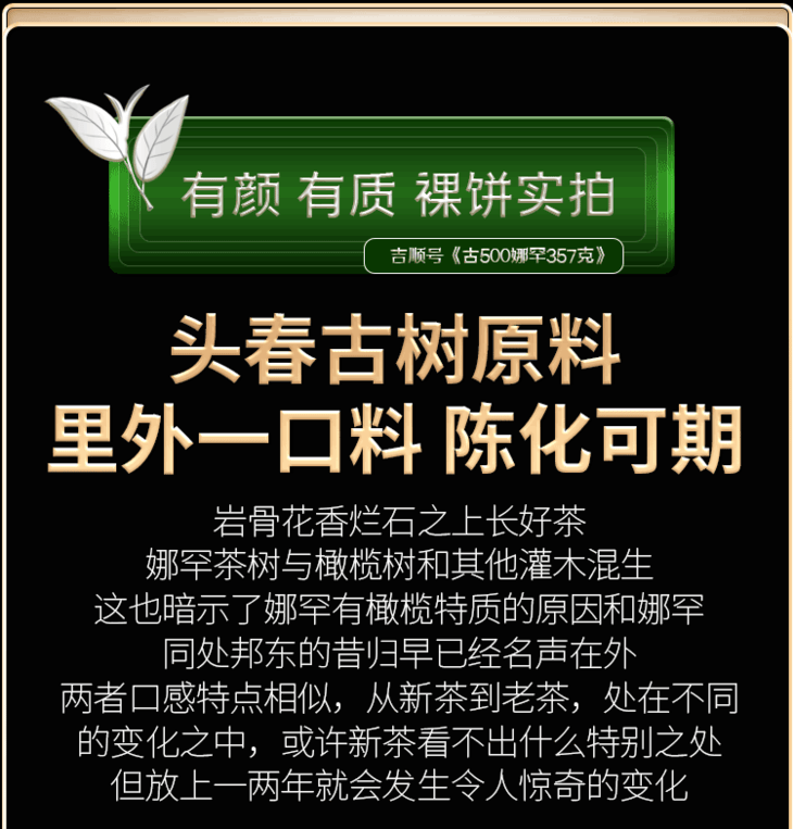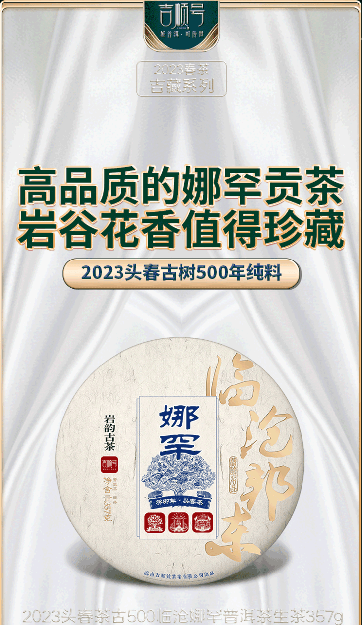 吉顺号2023头春茶古500娜罕古树普洱茶生饼357g