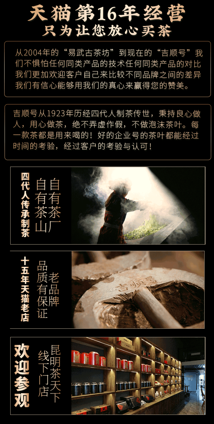 - 云南吉顺号茶业,专业云南普洱茶基地生产销售商。自有基地茶厂及运营仓储物流团队。
