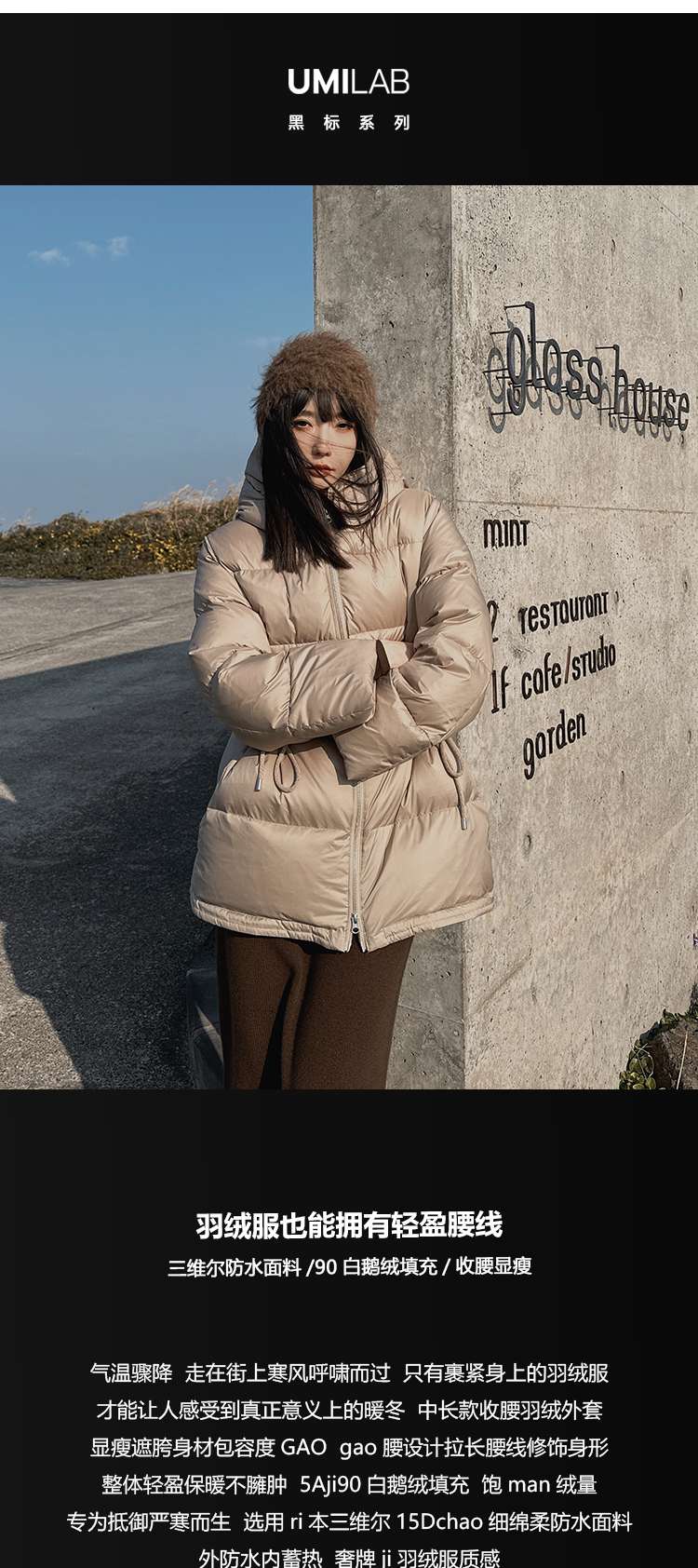 UMILAB【沙漏】日本三维尔防水面料+90白鹅绒收腰显瘦羽绒服F293H