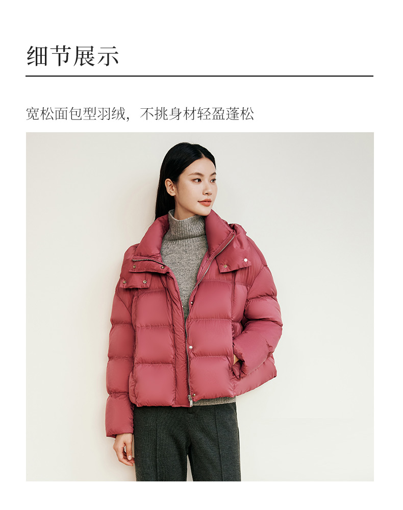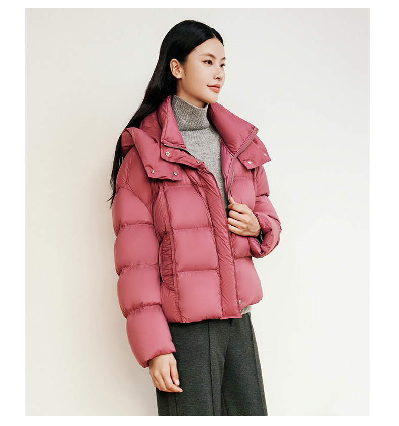 玳莎立领连帽面包保暖外套百搭女2024年冬季新款加厚短款羽绒服 ED41306