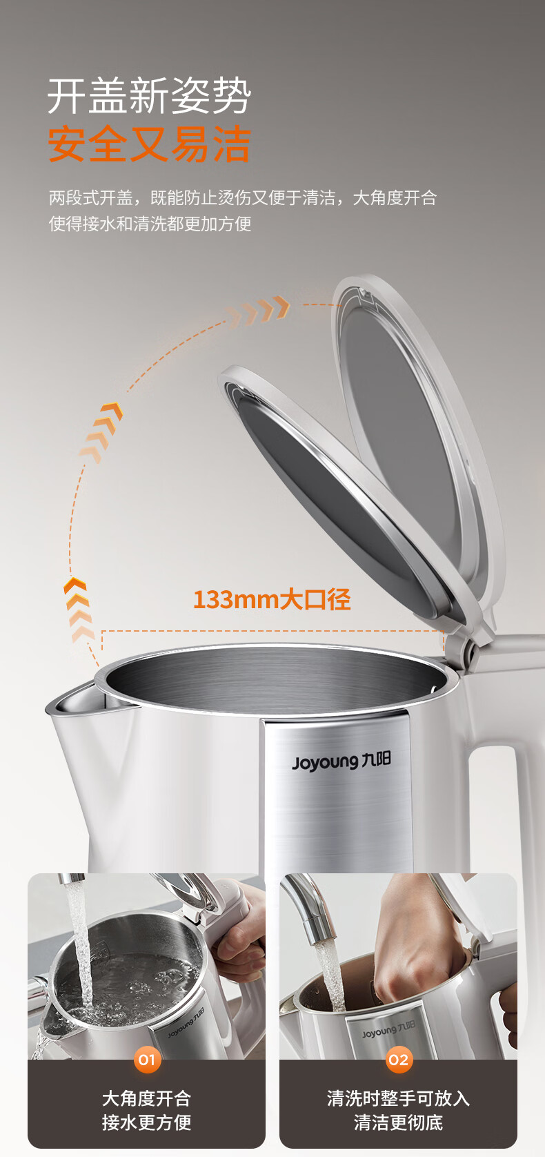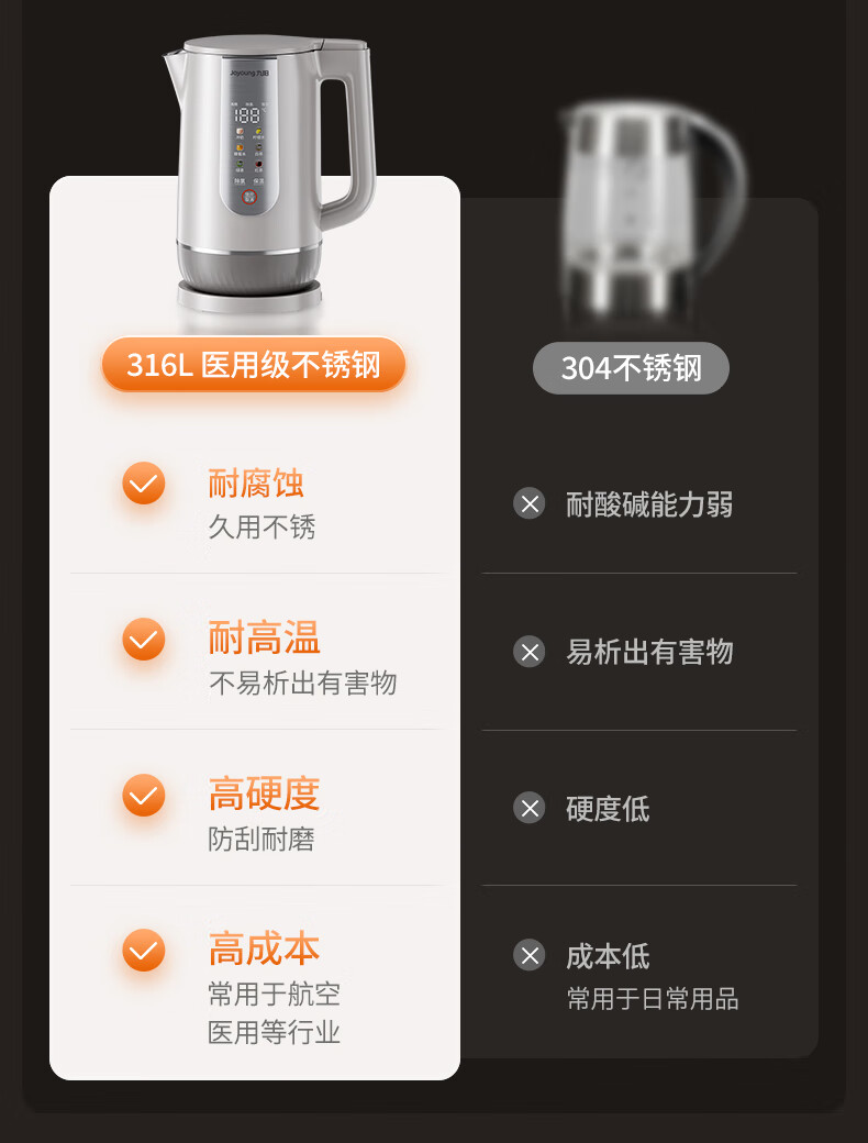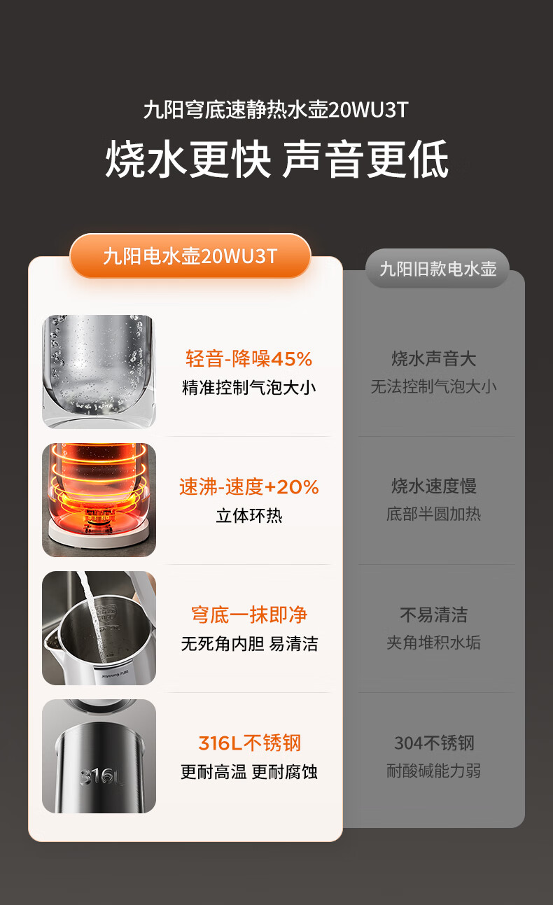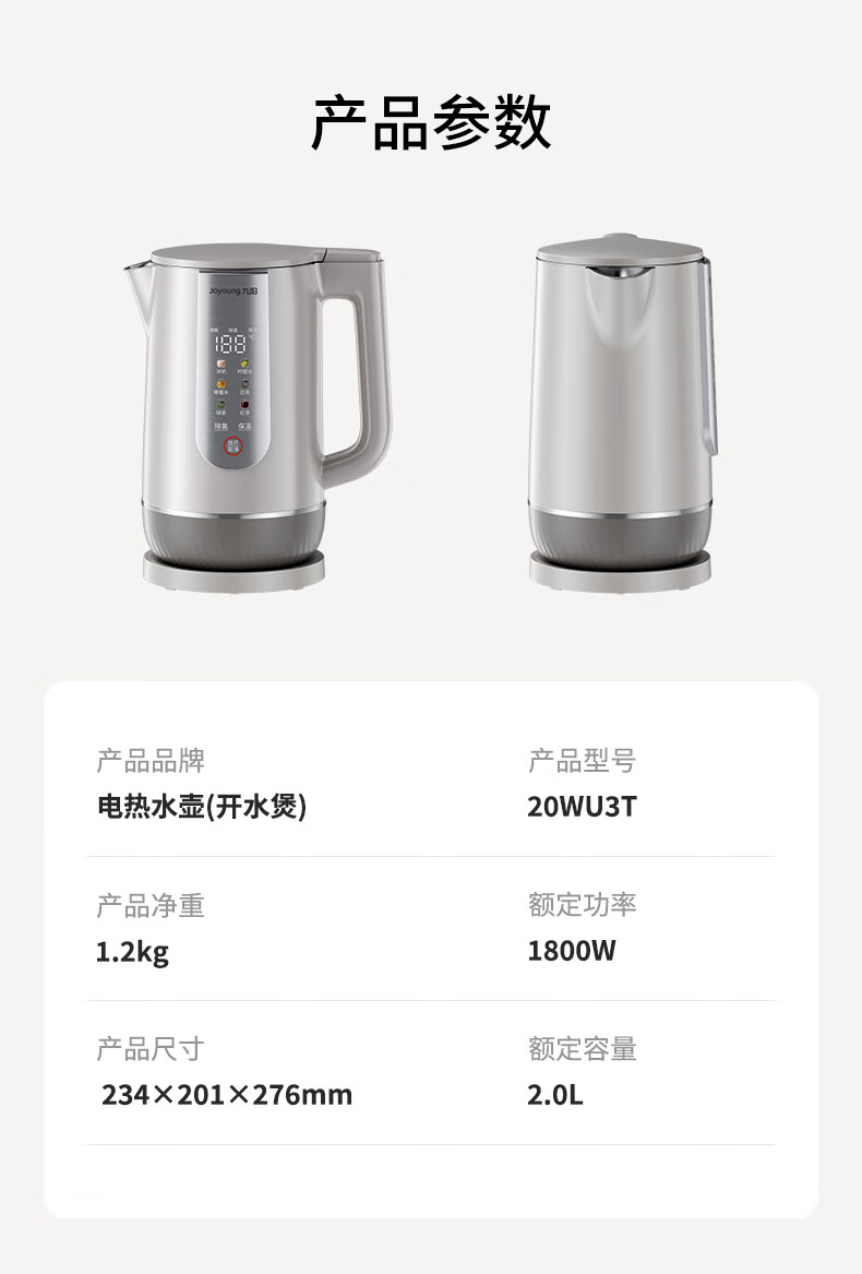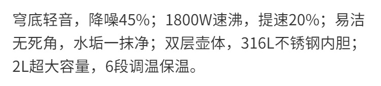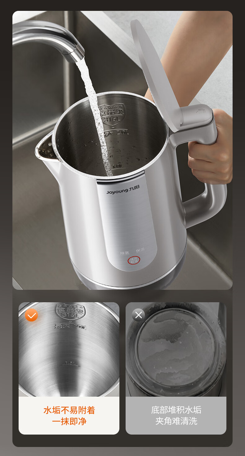 九阳穹底速静调温电热水壶2.0L大容量开水煲316L不锈钢内胆烧水壶