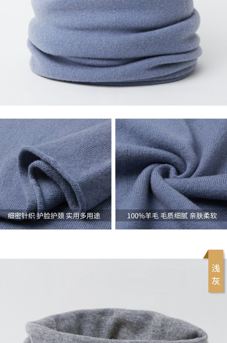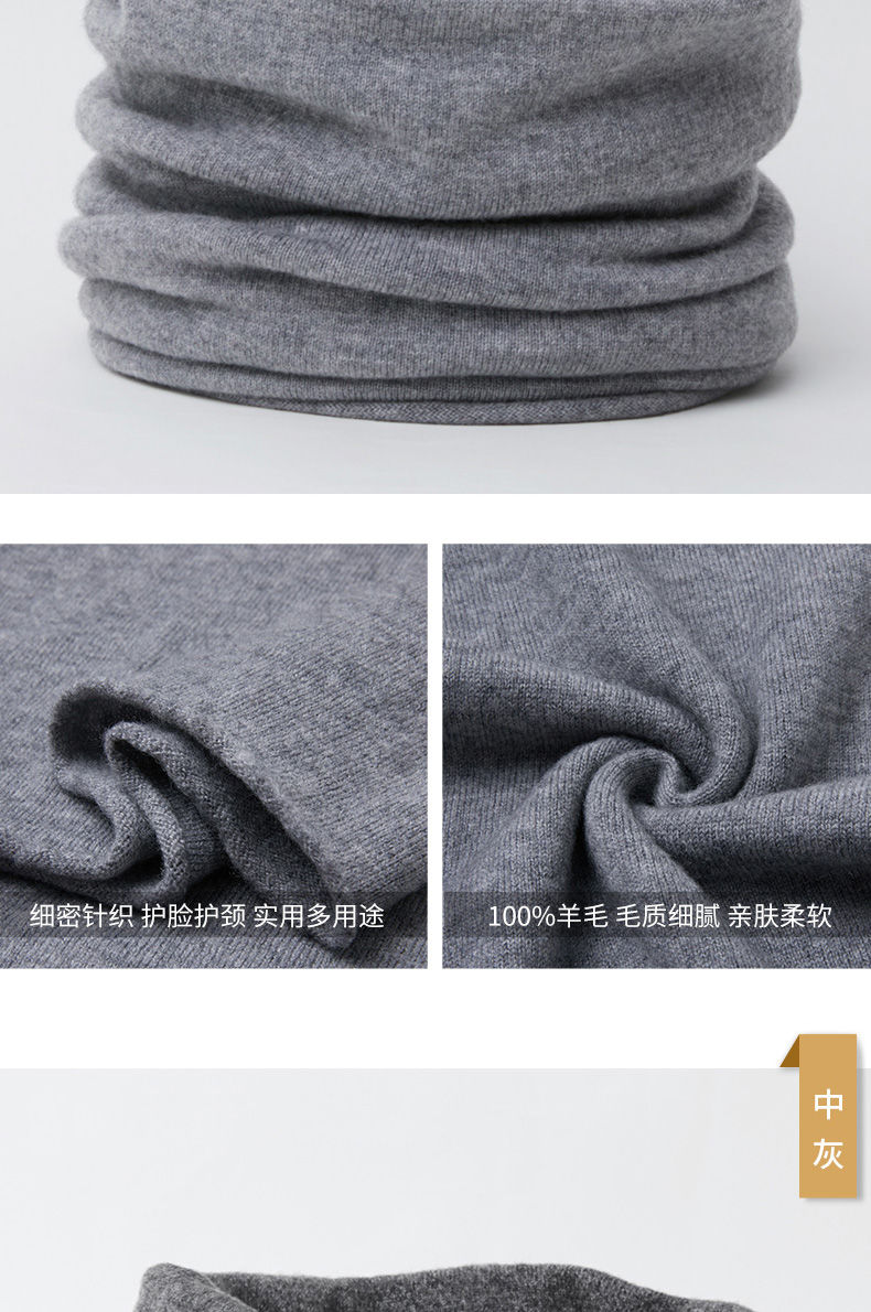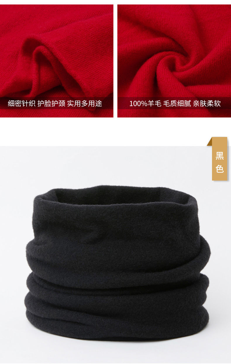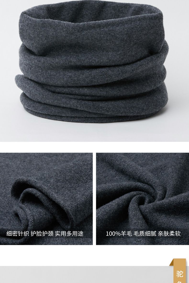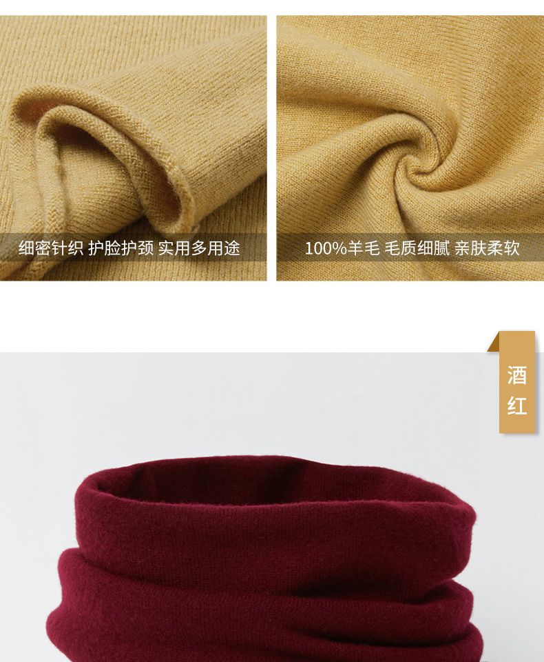 100%羊毛围脖女冬加厚保暖护颈脖套男秋冬季纯色针织套头围巾防寒