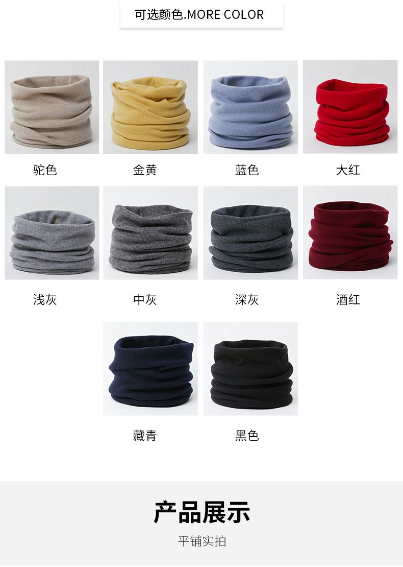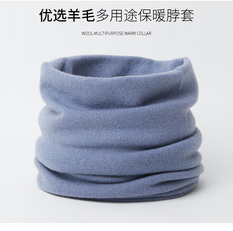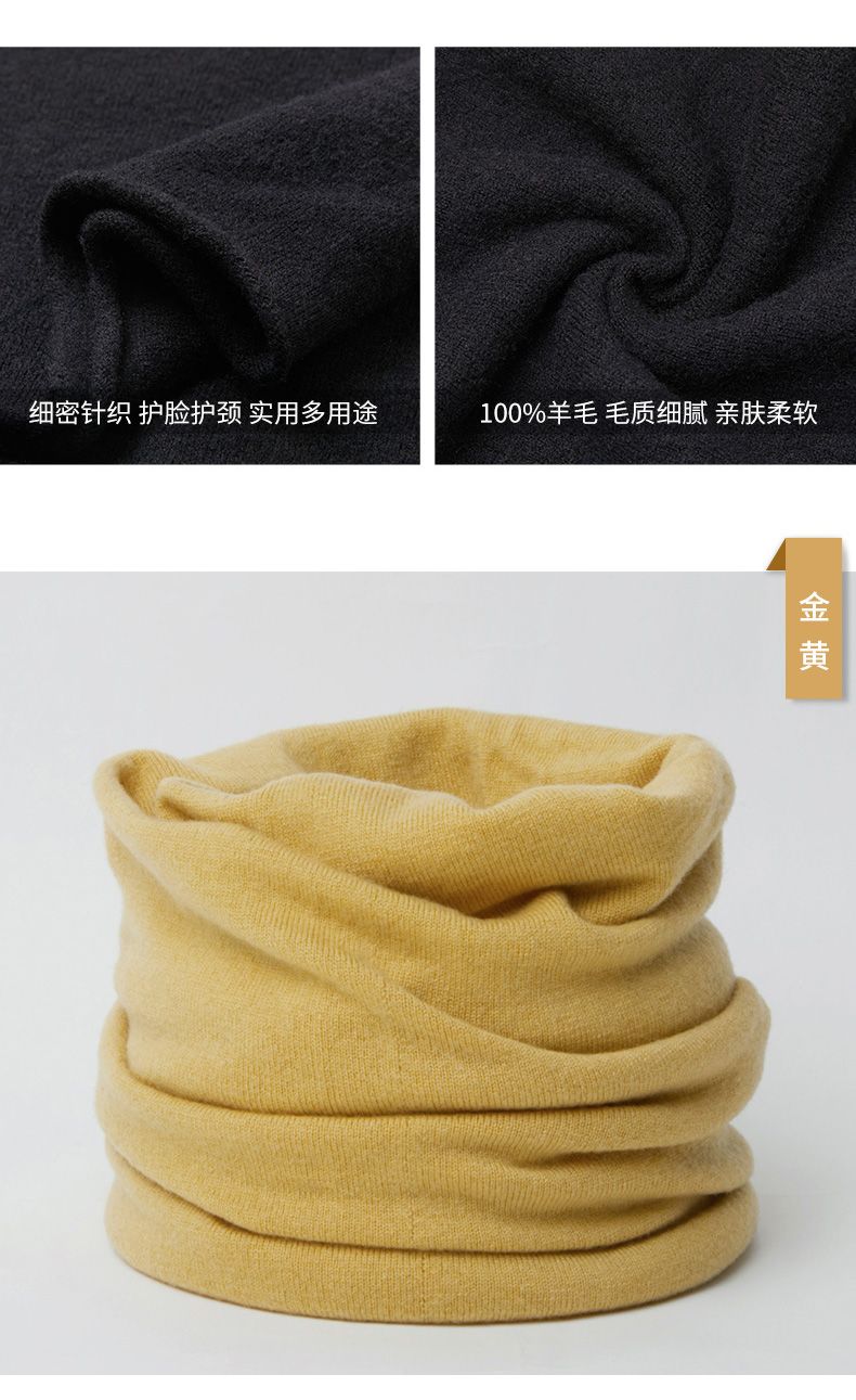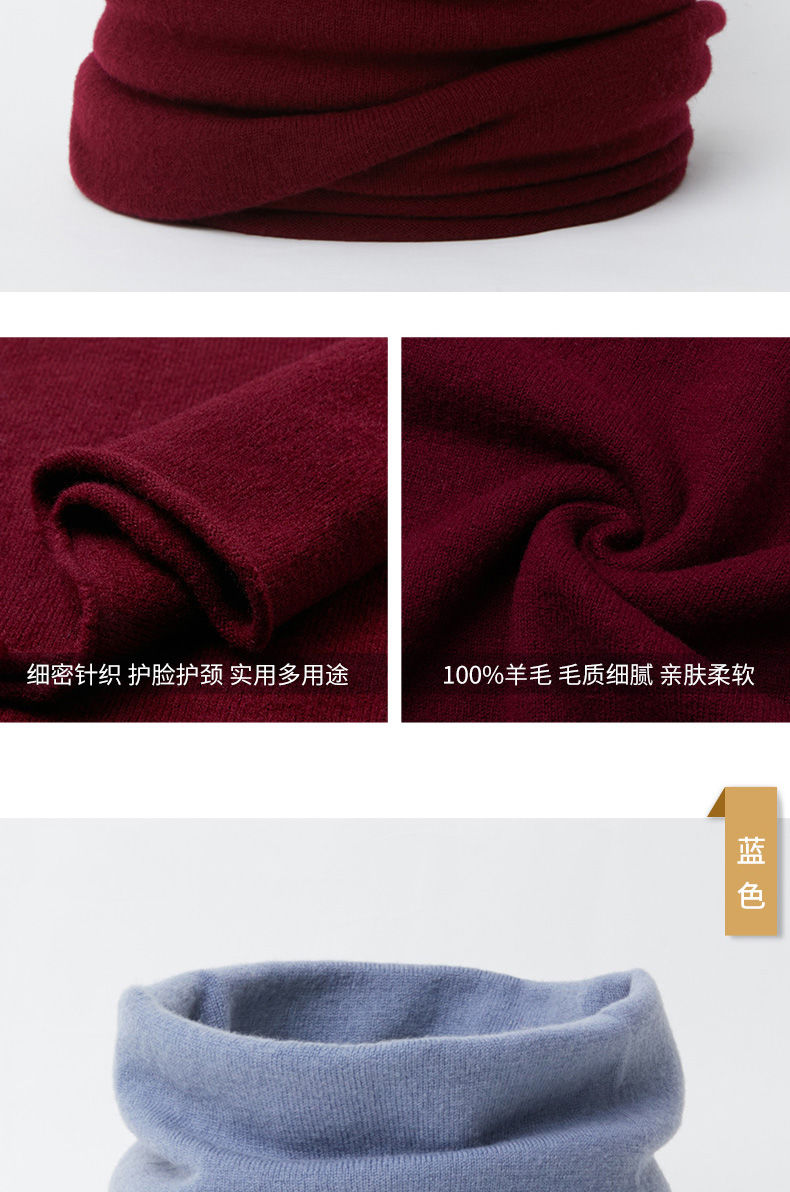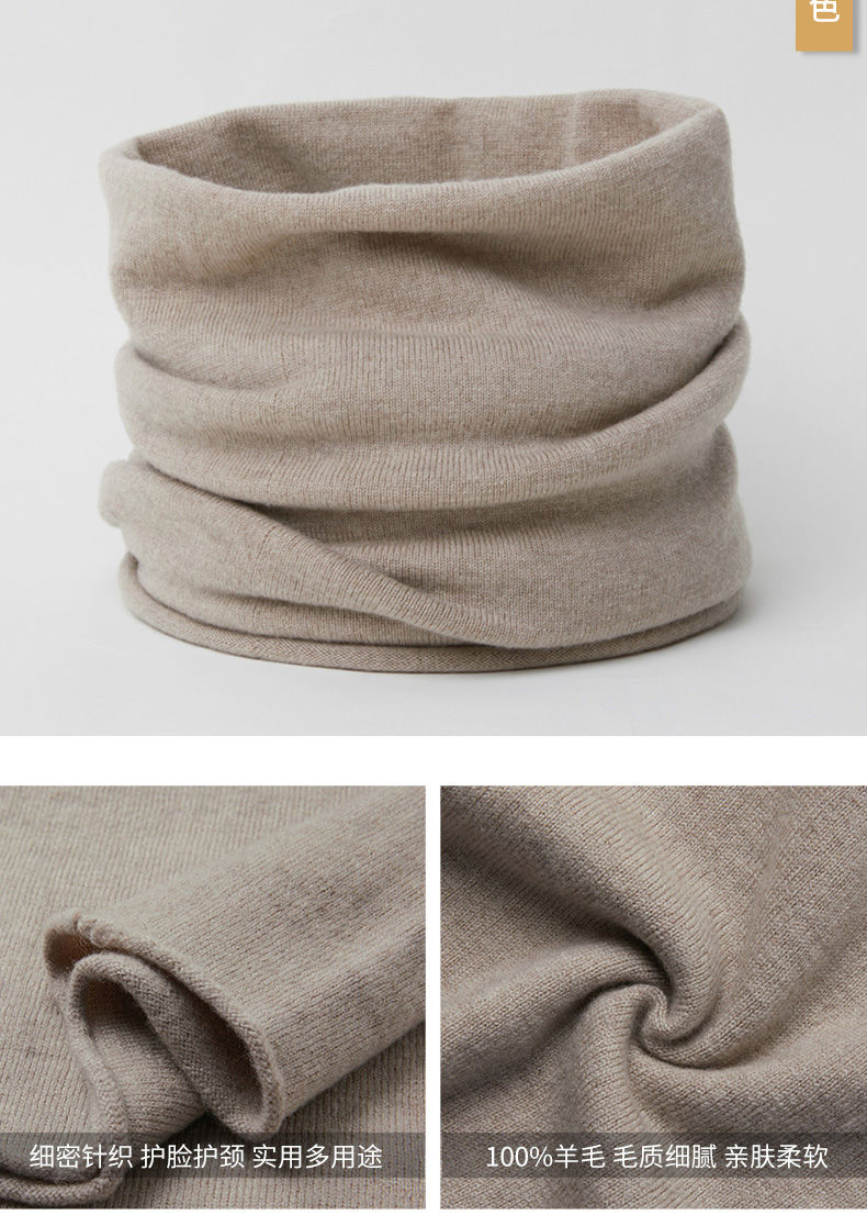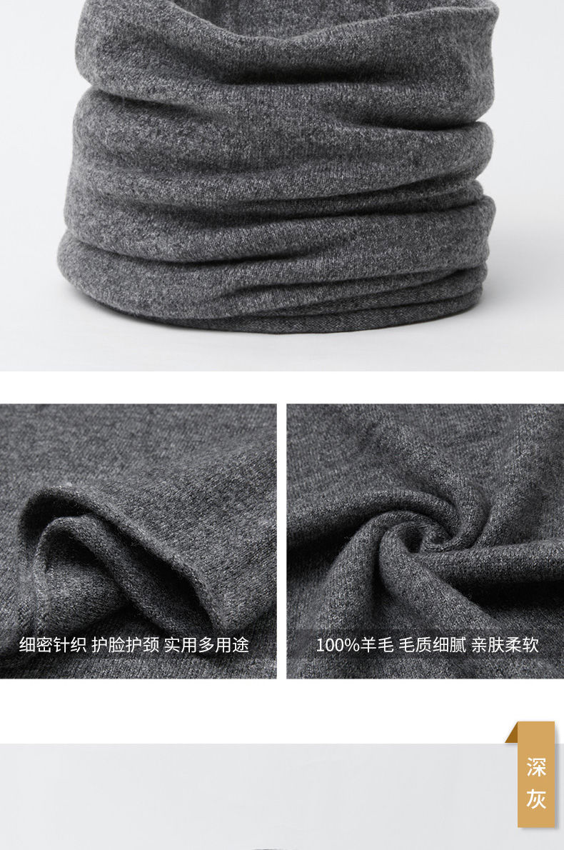 100%羊毛围脖女冬加厚保暖护颈脖套男秋冬季纯色针织套头围巾防寒