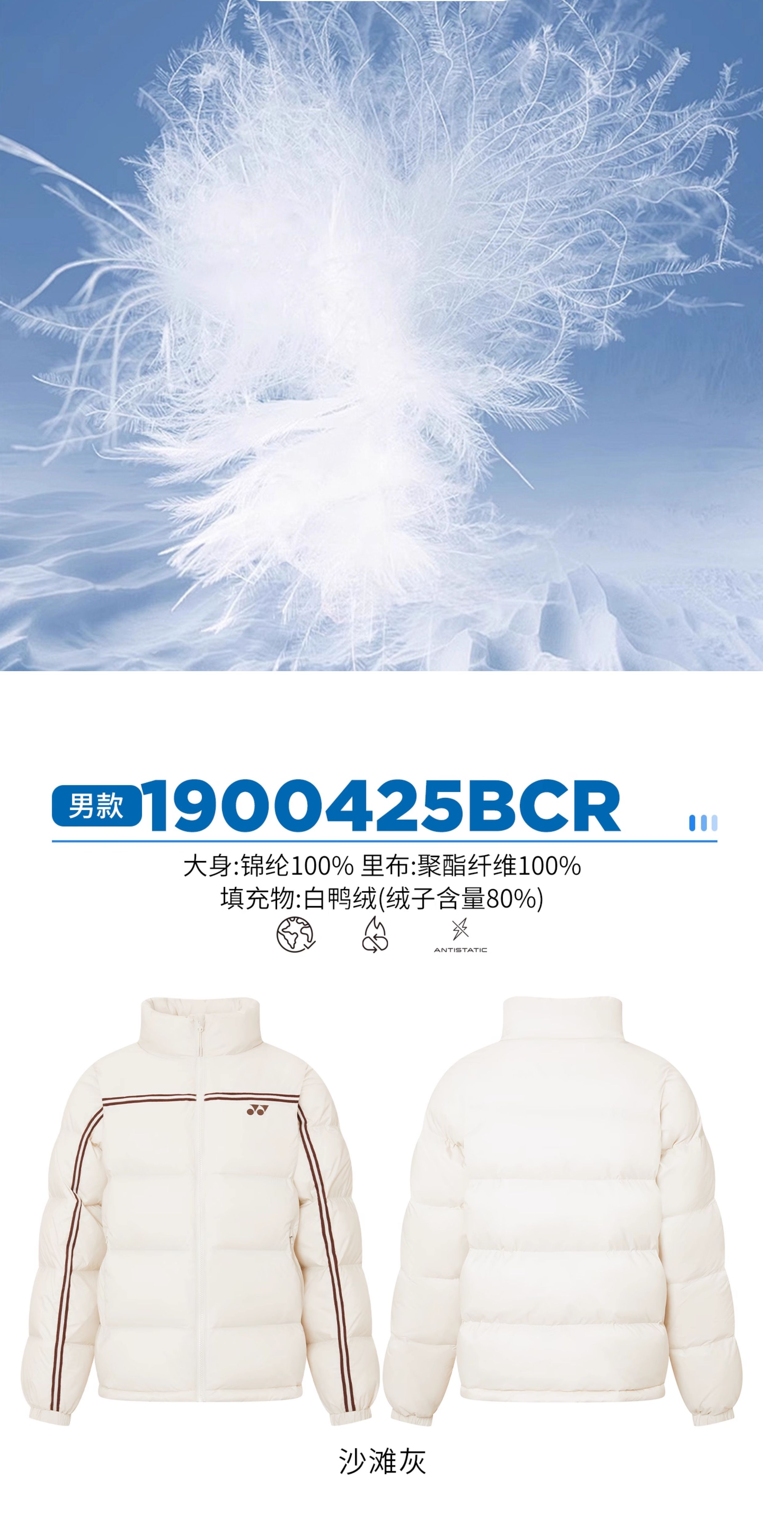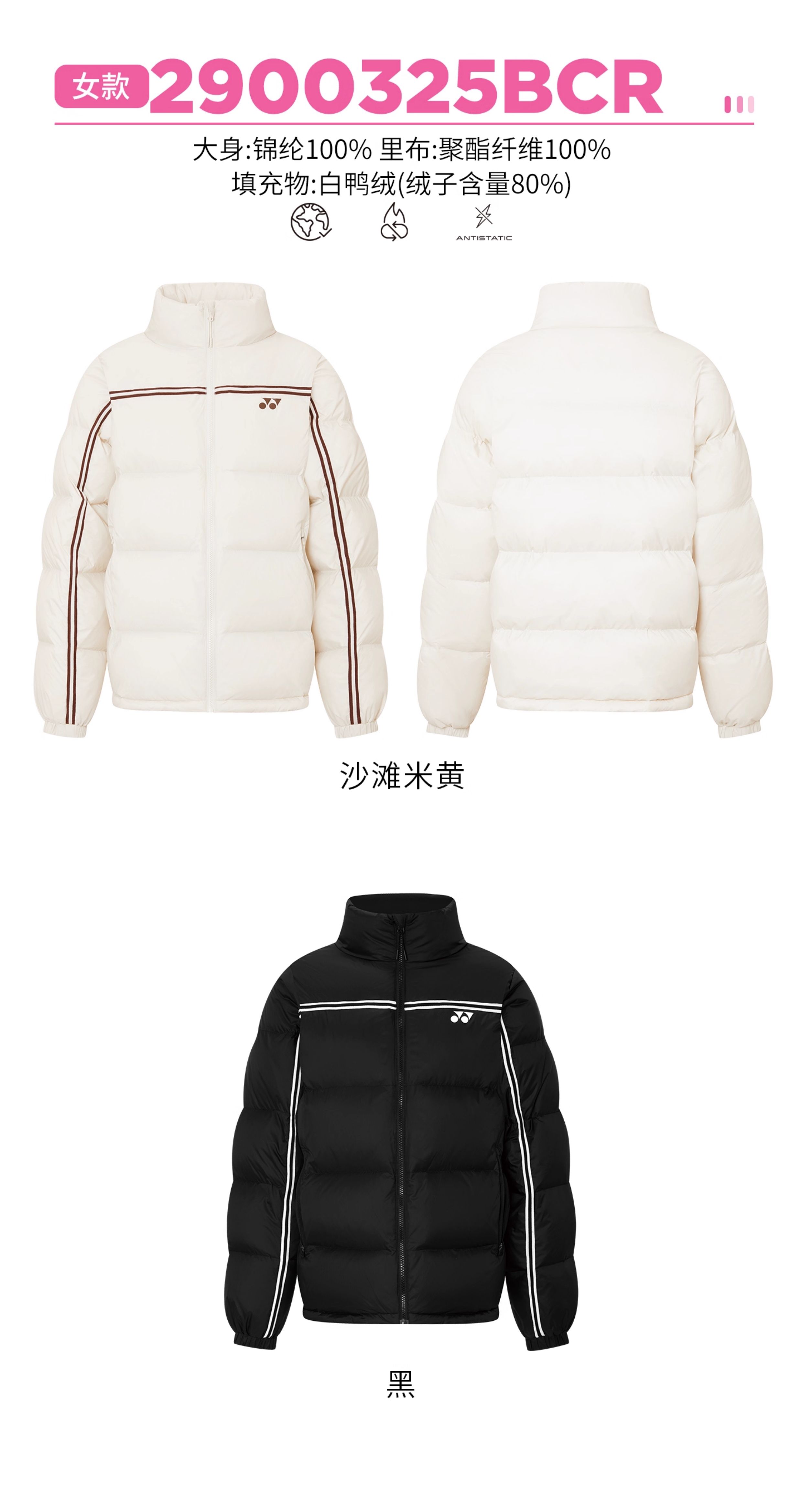 尤尼克斯 男款/女款 羽绒服 1900425BCR/2900425BCR