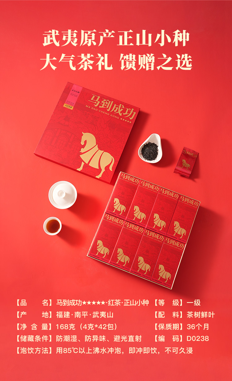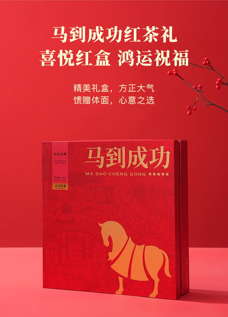 八马茶业 | 正宗武夷原产正山小种红茶马上红高端茶送长辈礼盒装192g