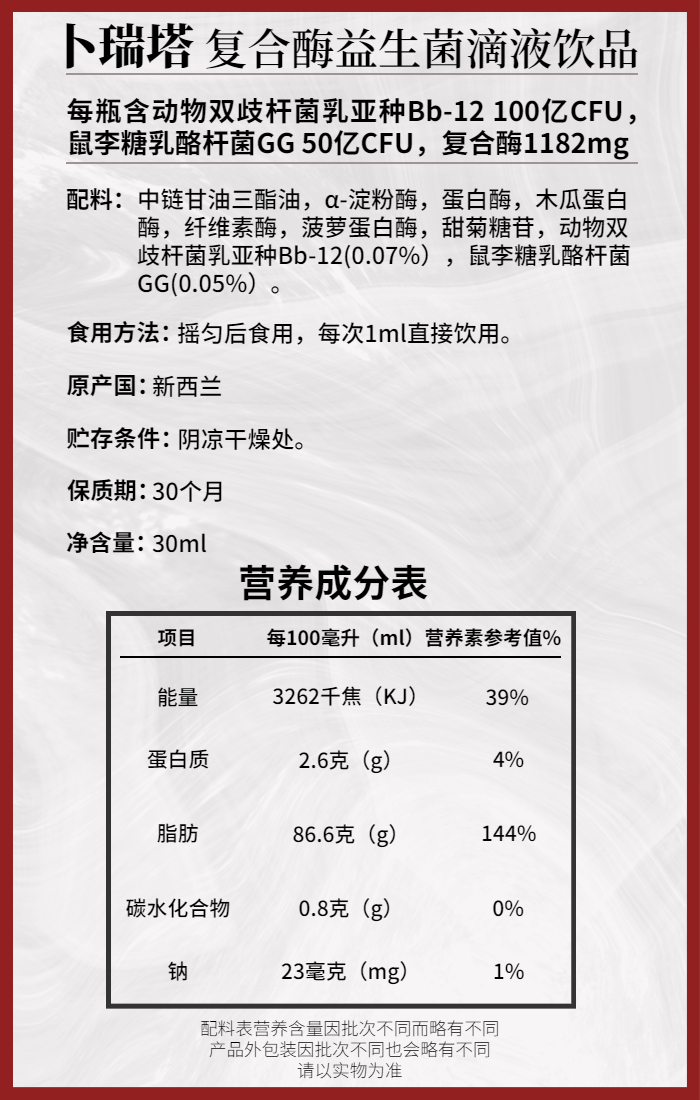 新西兰卜瑞塔(IMMUNRISE)复合酶益生菌滴剂 30ml