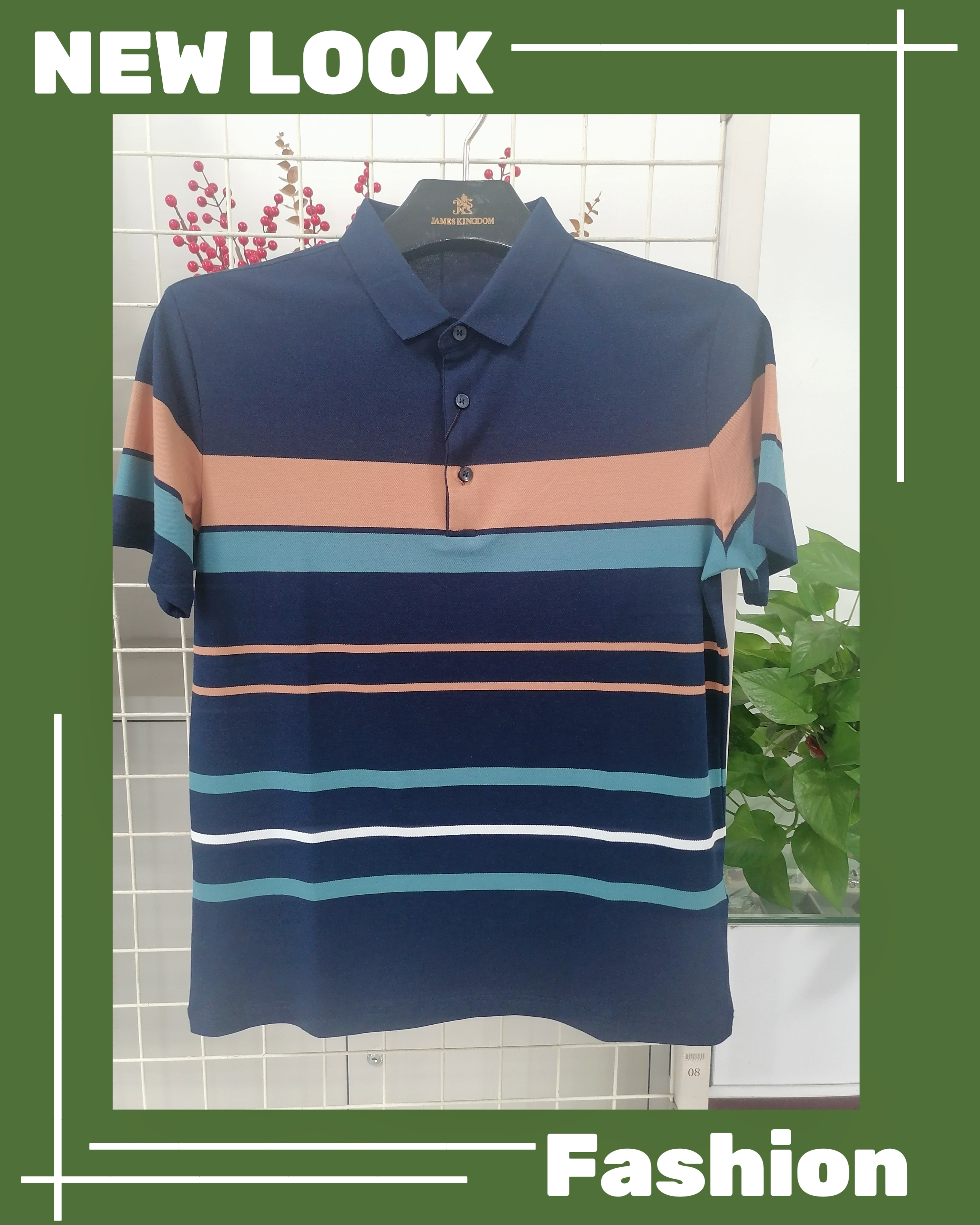 占姆士夏季新男士短袖T恤翻领POLO衫时尚休闲条纹上衣