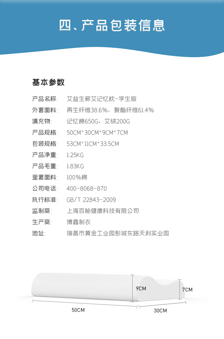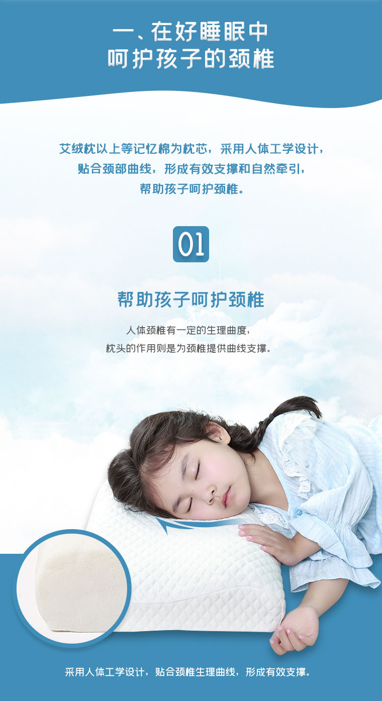 【艾绒养生记忆枕-学生版】呵护孩子们的睡眠