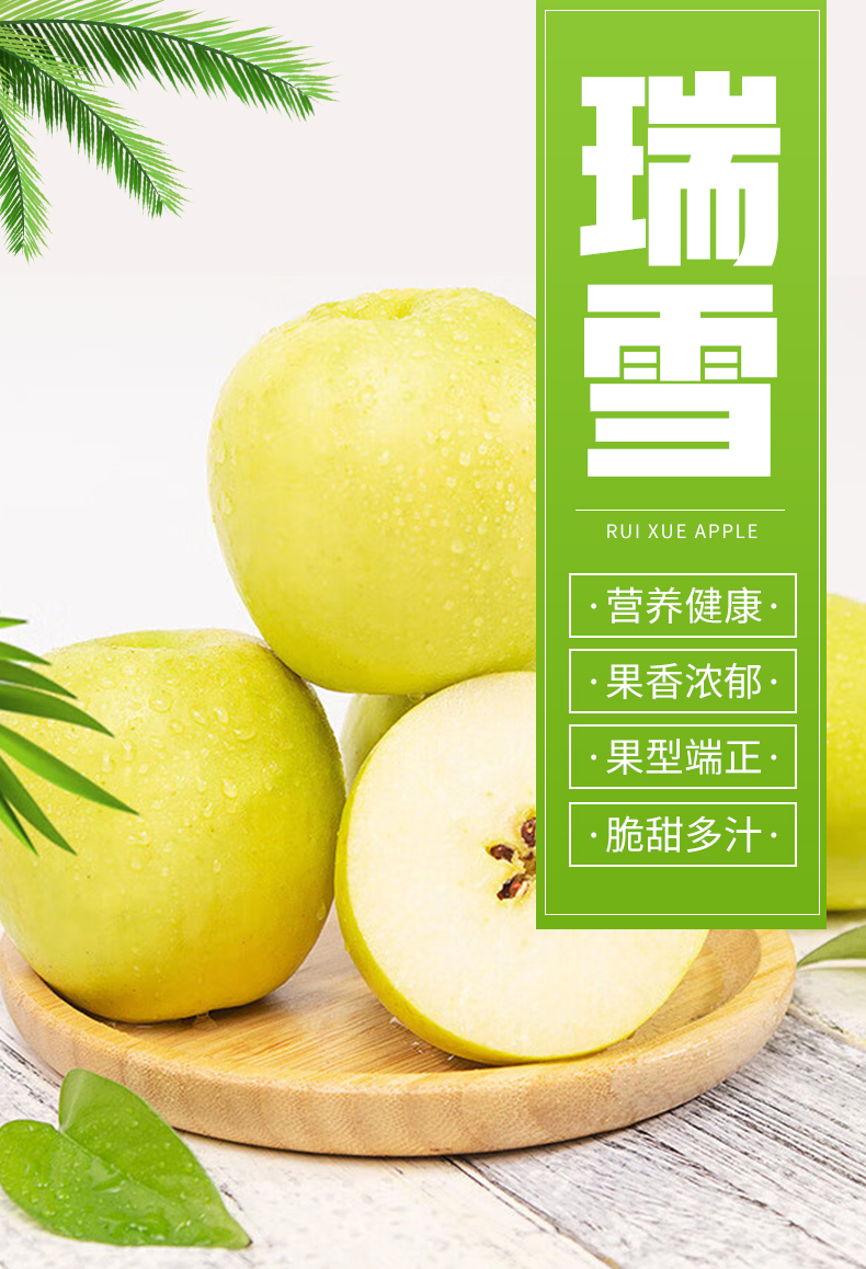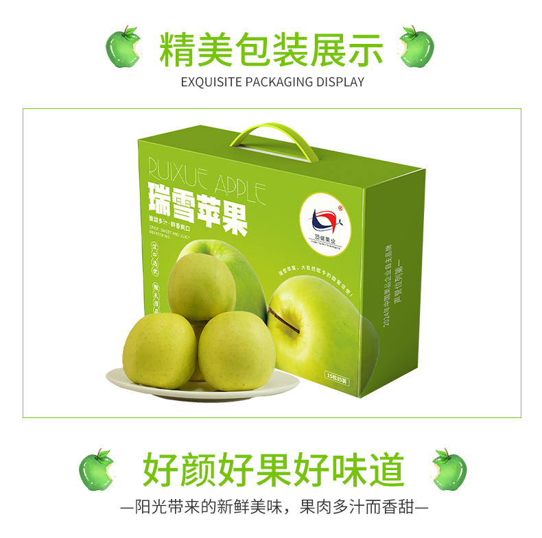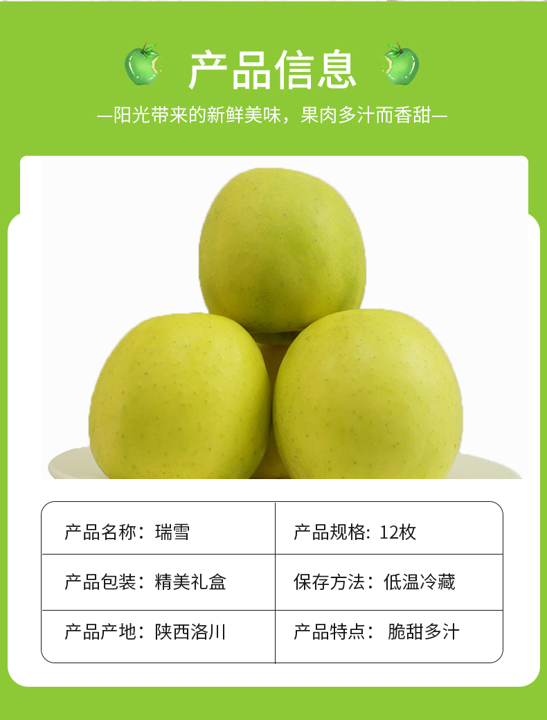 【瑞雪苹果】陕西洛川苹果新品种青绿色瑞雪苹果15枚85mm品质大果 库存少卖完下架